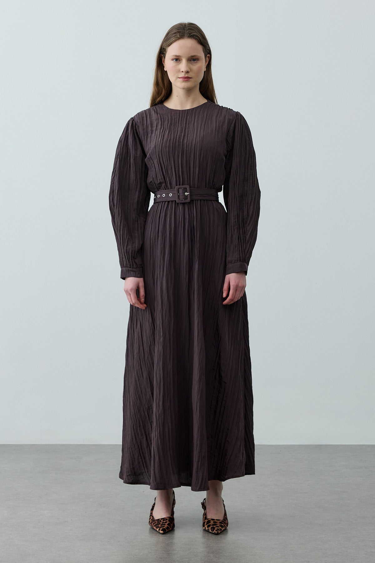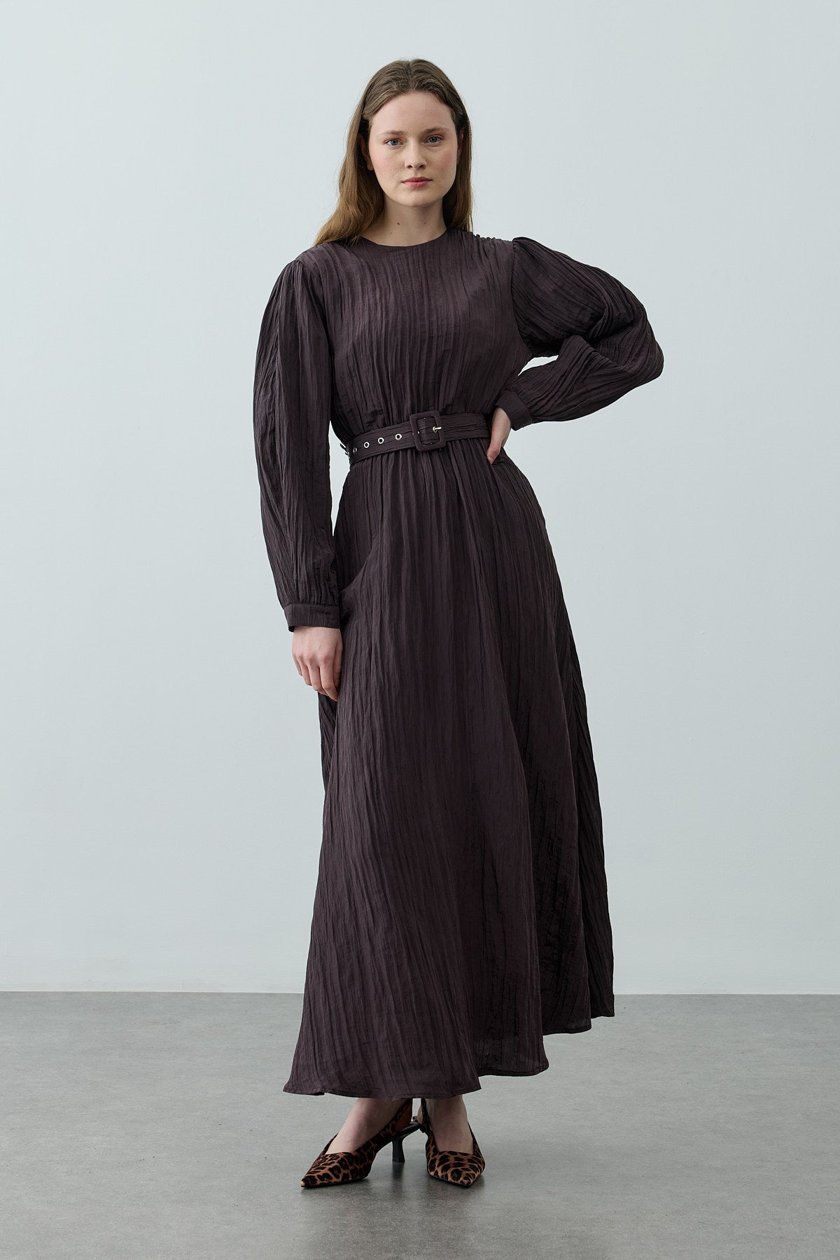 Brown Dress with Ribbed Belt