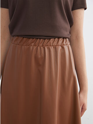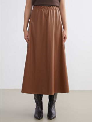 LCW Modest Brown Elastic Waist Leather-Look Flare Skirt with exclusive discounts, installment options, and cash on delivery advantages at LCW! Shop online now and have the product delivered to your door! – W5ML71Z8-ZK8