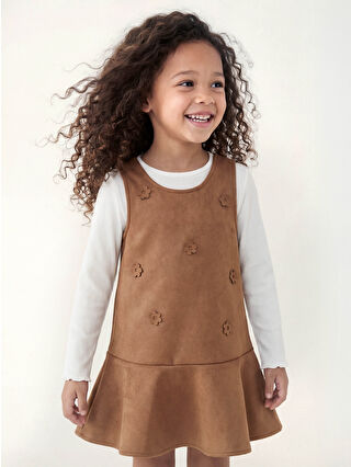 Tags: brown dress, cotton blend, elegant wear, girls fashion, jelly dress, kids clothing, LCW Kids, long sleeve, suede look