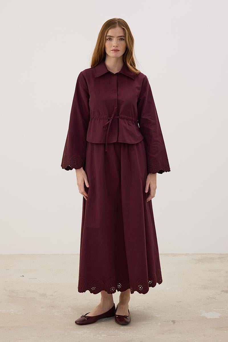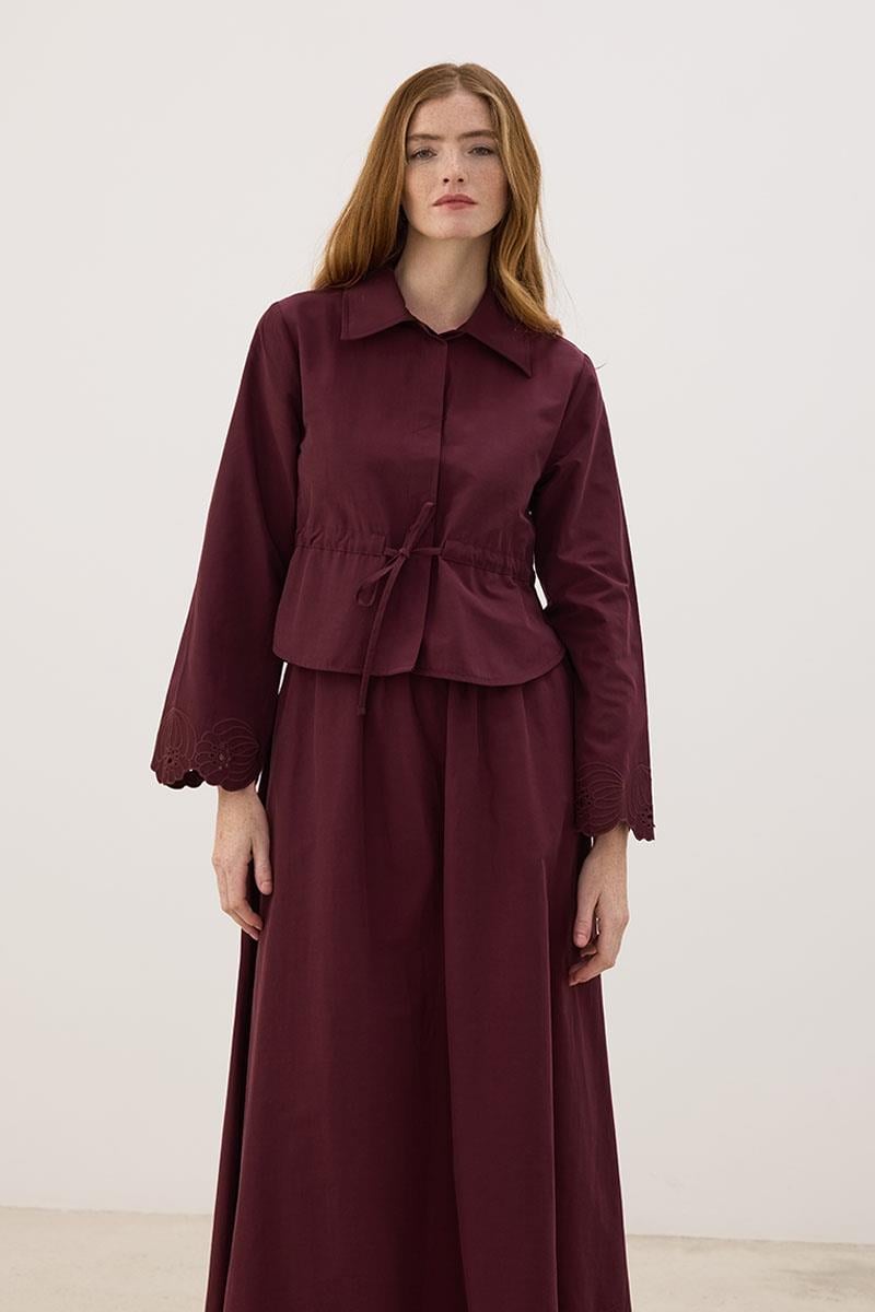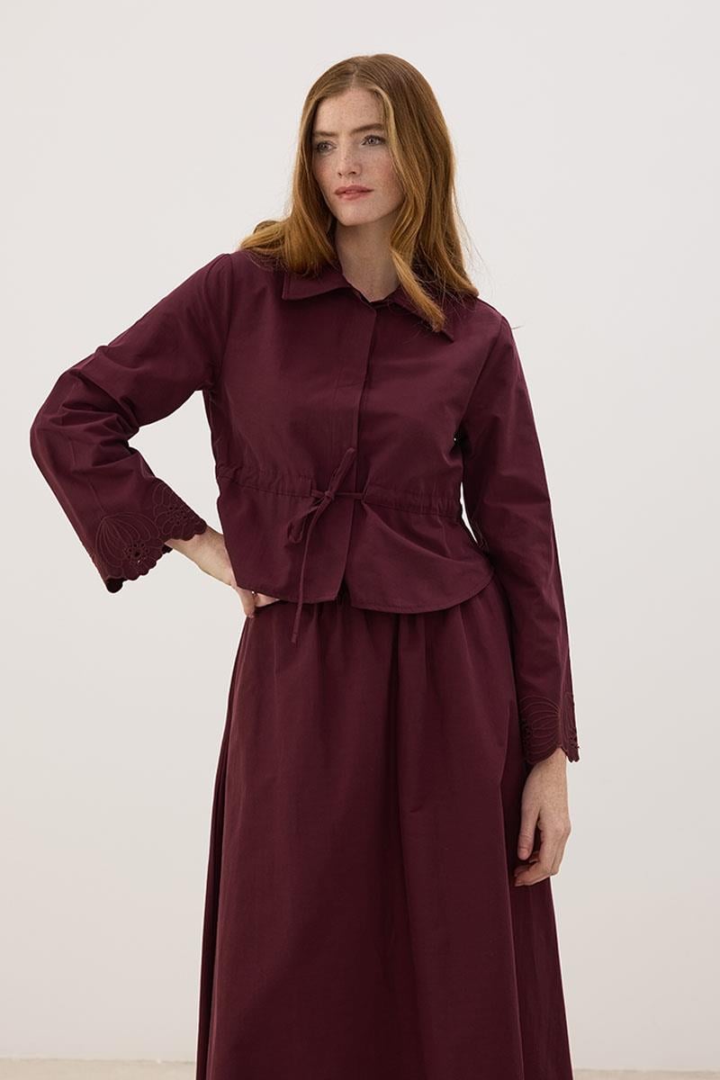 Tags: burgundy jacket, cotton jacket, embroidered jacket, jacket, long sleeve, polyester jacket, regular fit, shirt collar, women's jacket