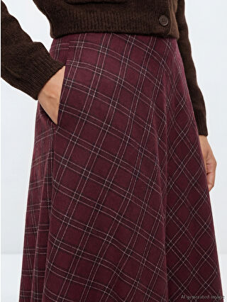 XSIDE Burgundy High-Waisted Zippered Plaid Flared Skirt – available with exclusive discounts, installment options, and cash on delivery advantages at LCW! Shop online now and have it delivered to your door! – S6N106Z8-2D2