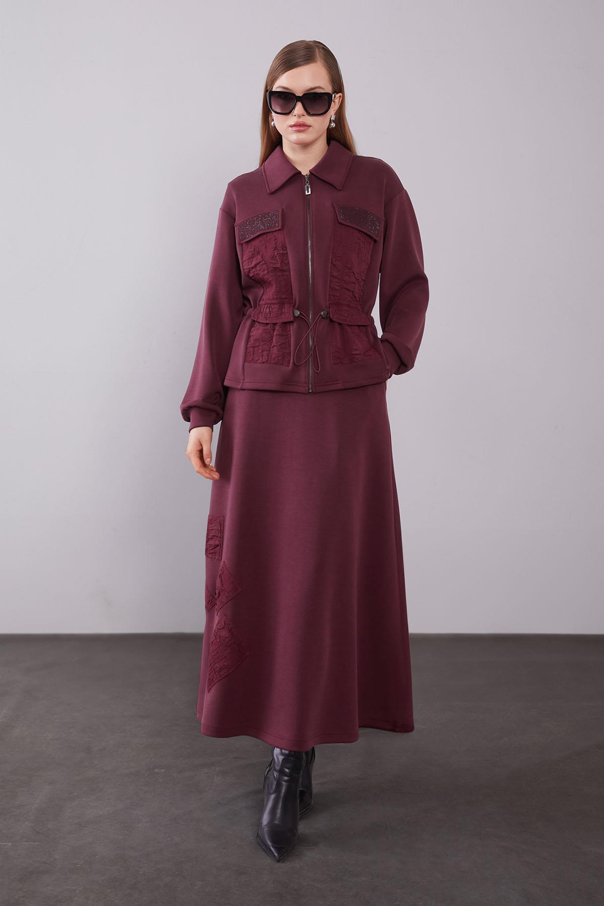 Be the first to review “Burgundy Pleated Patch Detail Skirt Set” Cancel reply