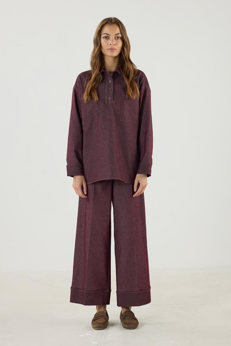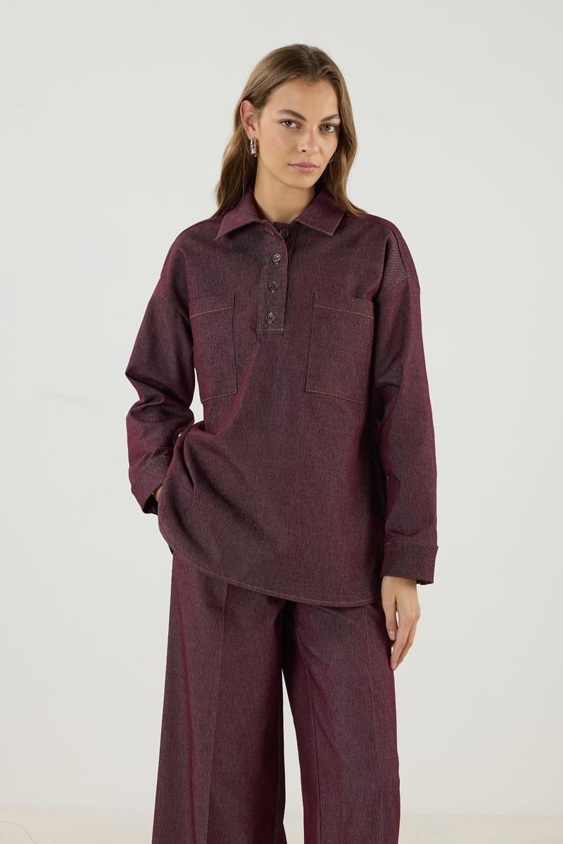 Tags: burgundy, casual shirt, cotton blend, long sleeve, pocket shirt, women's fashion
