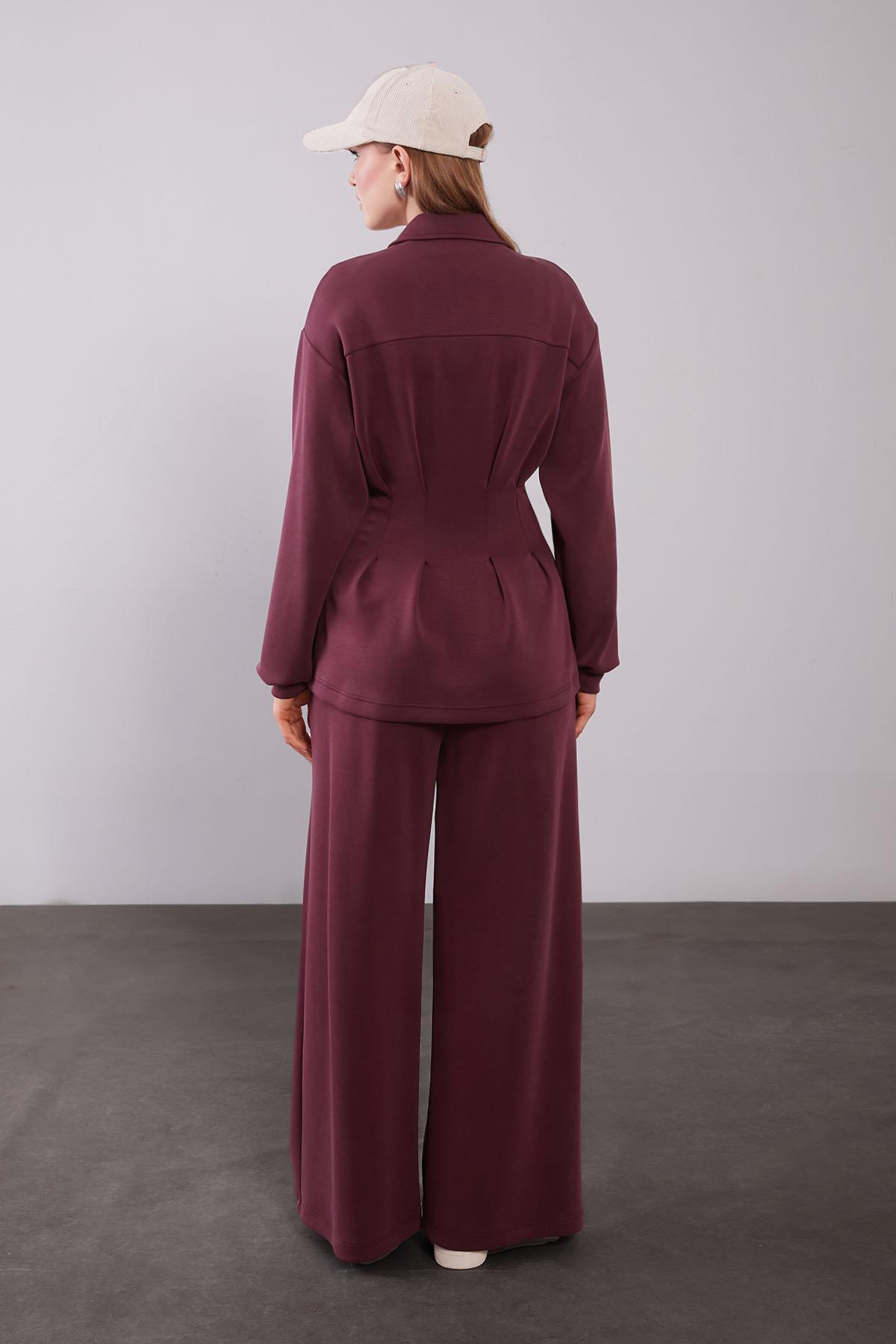 Burgundy Waist-Fit Pleated Detail Two-Piece Set
