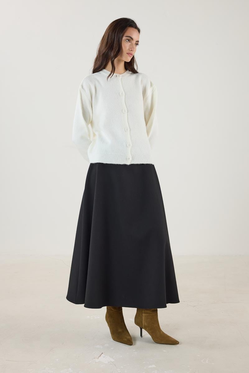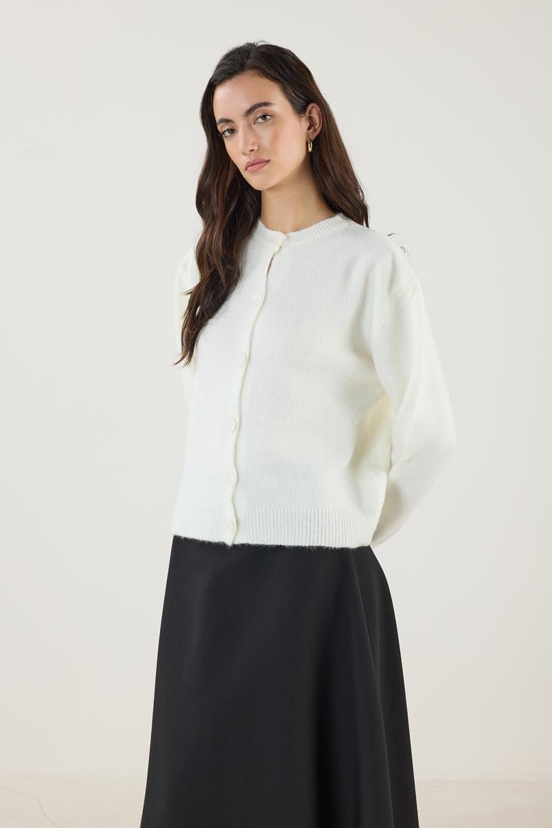 Buttoned Knit Cardigan in Ecru