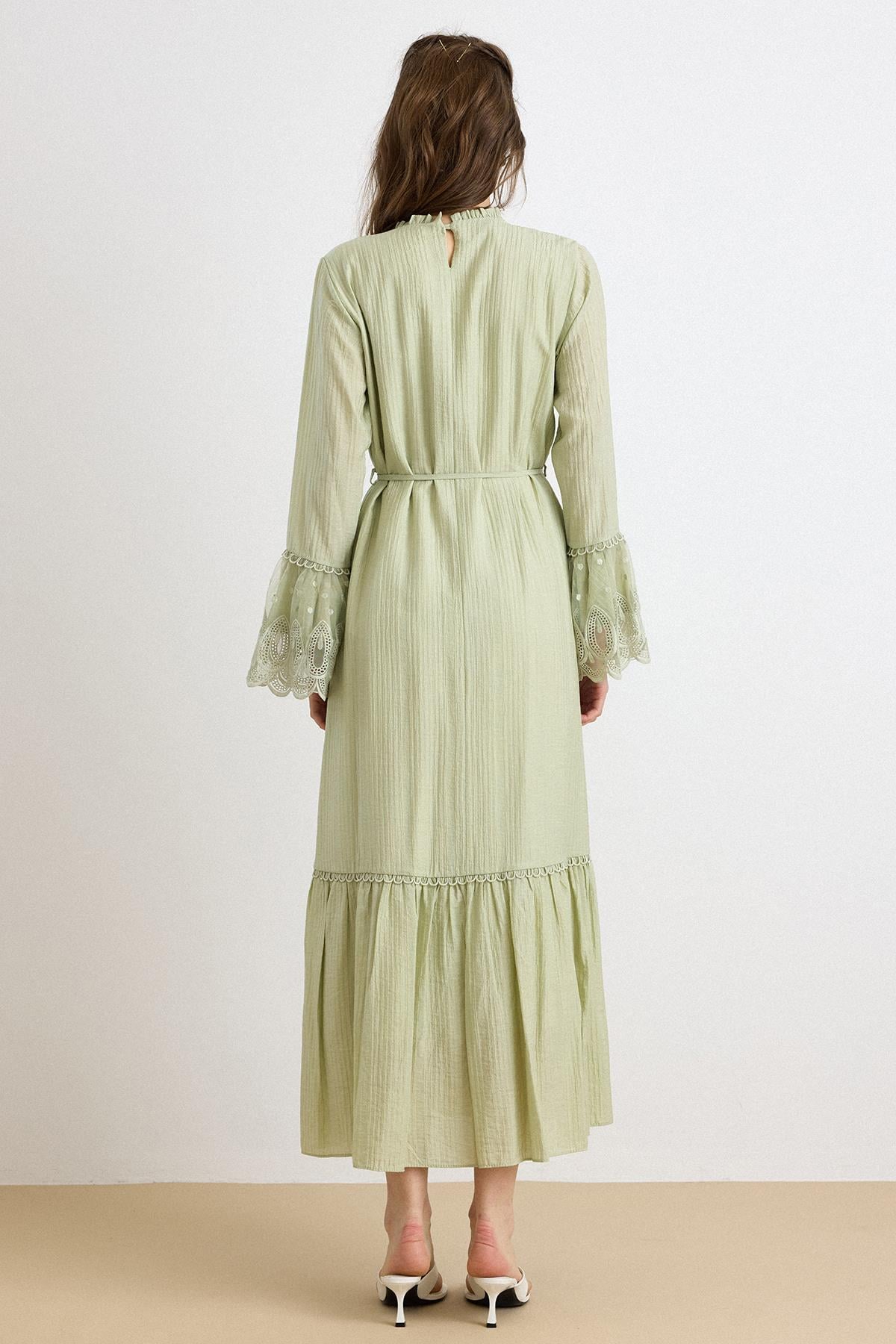 ÇAĞLA 9429-E Lace-Trimmed Dress with Cuffed Sleeves