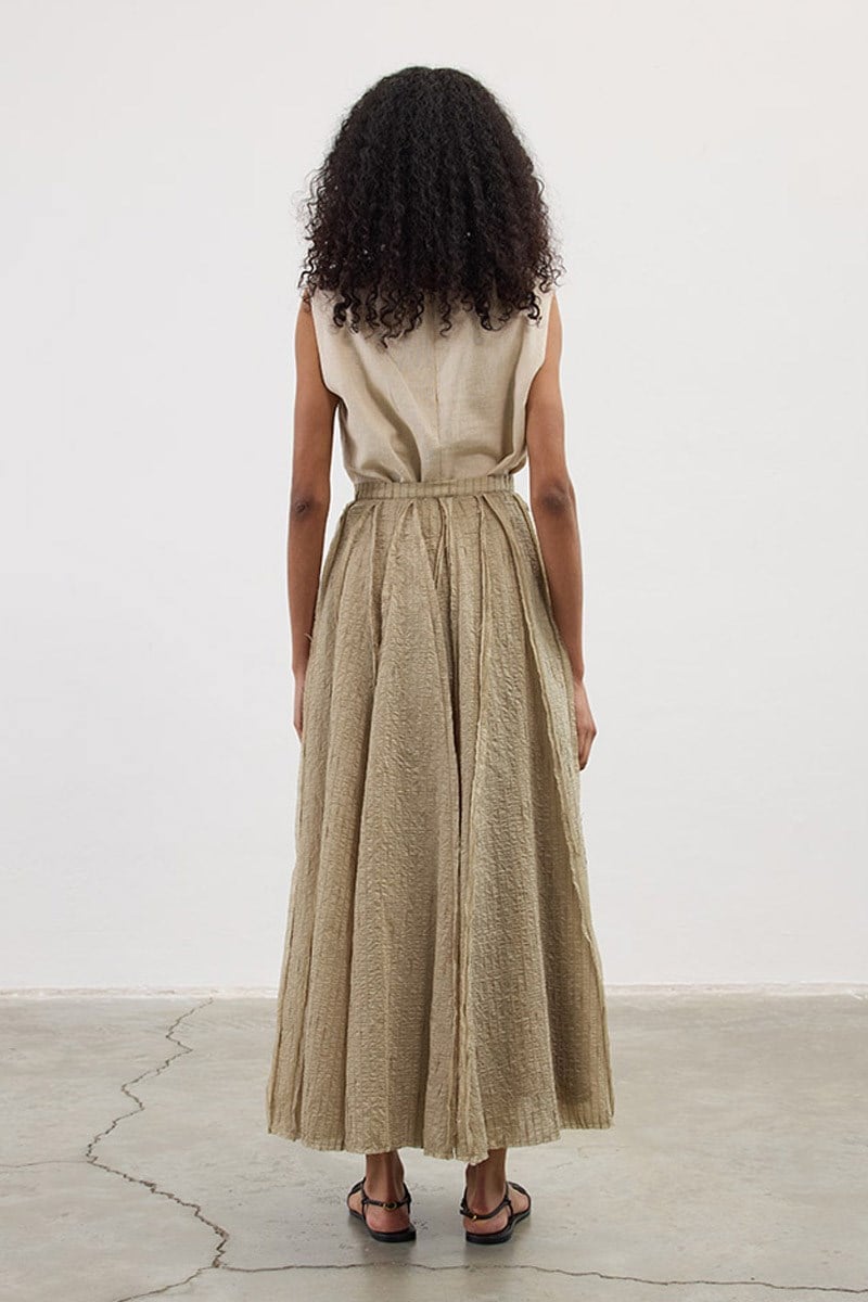 Pleated Long Tunic in Olive Green