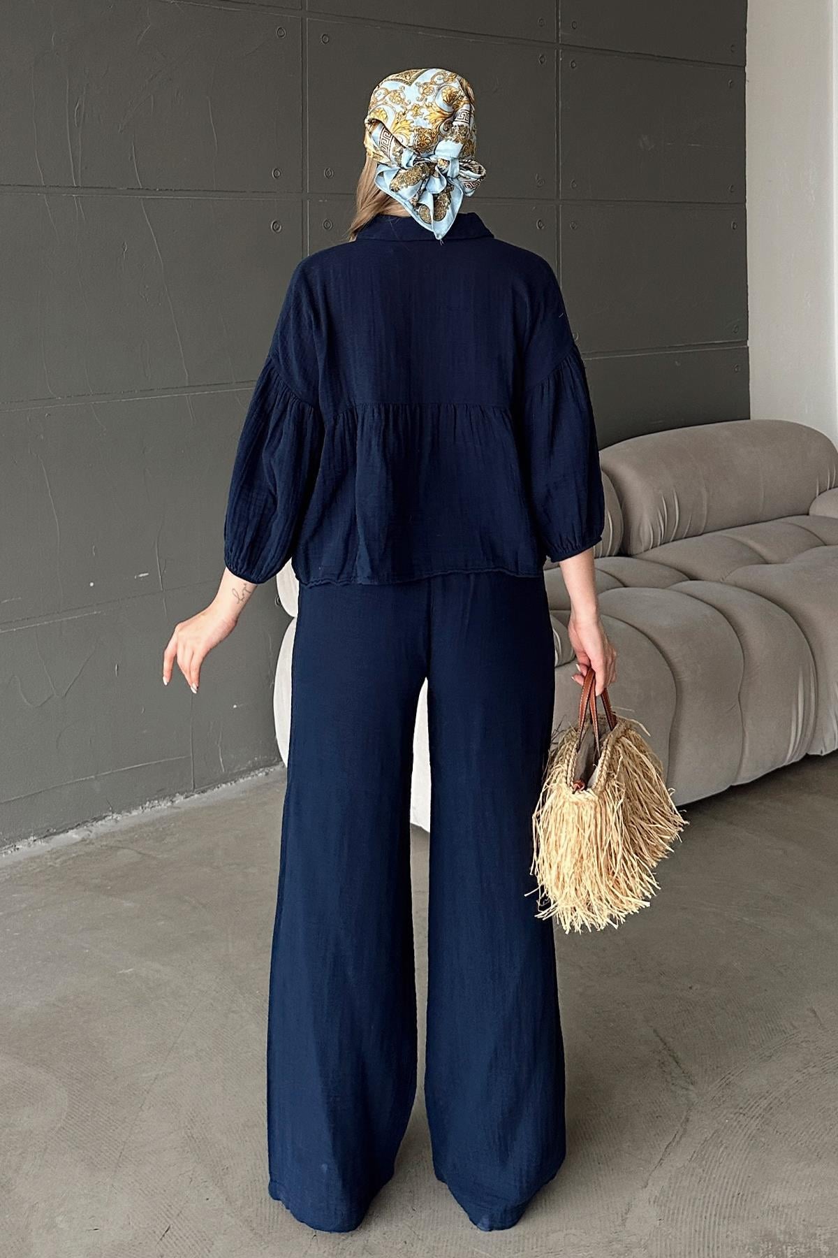 Tags: casual set, cotton clothing, muslin fabric, navy blue, regular fit, short shirt, spring summer 2025, unlined