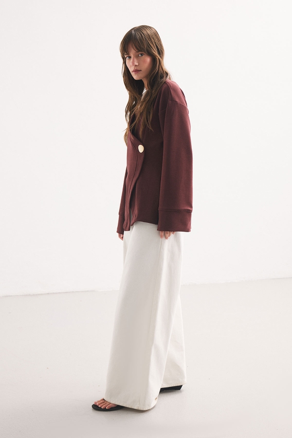 Tags: button detail, cherry color, kimono blouse, regular fit, viscose blend
