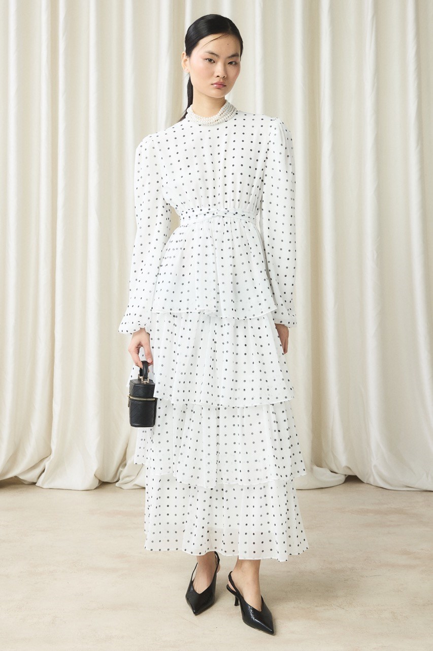 Be the first to review “Chiffon Pointelle Print Layered Dress – Ecru” Cancel reply