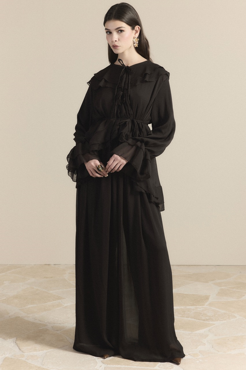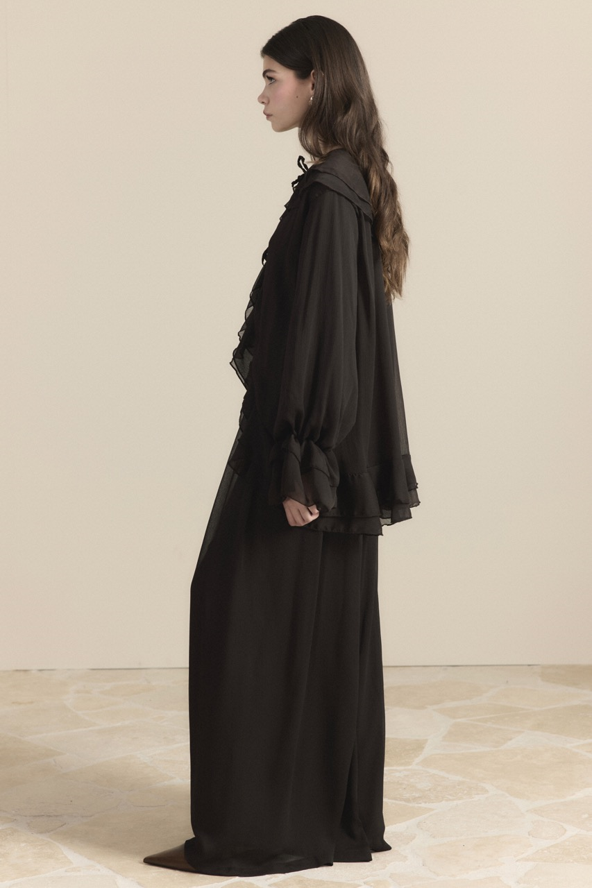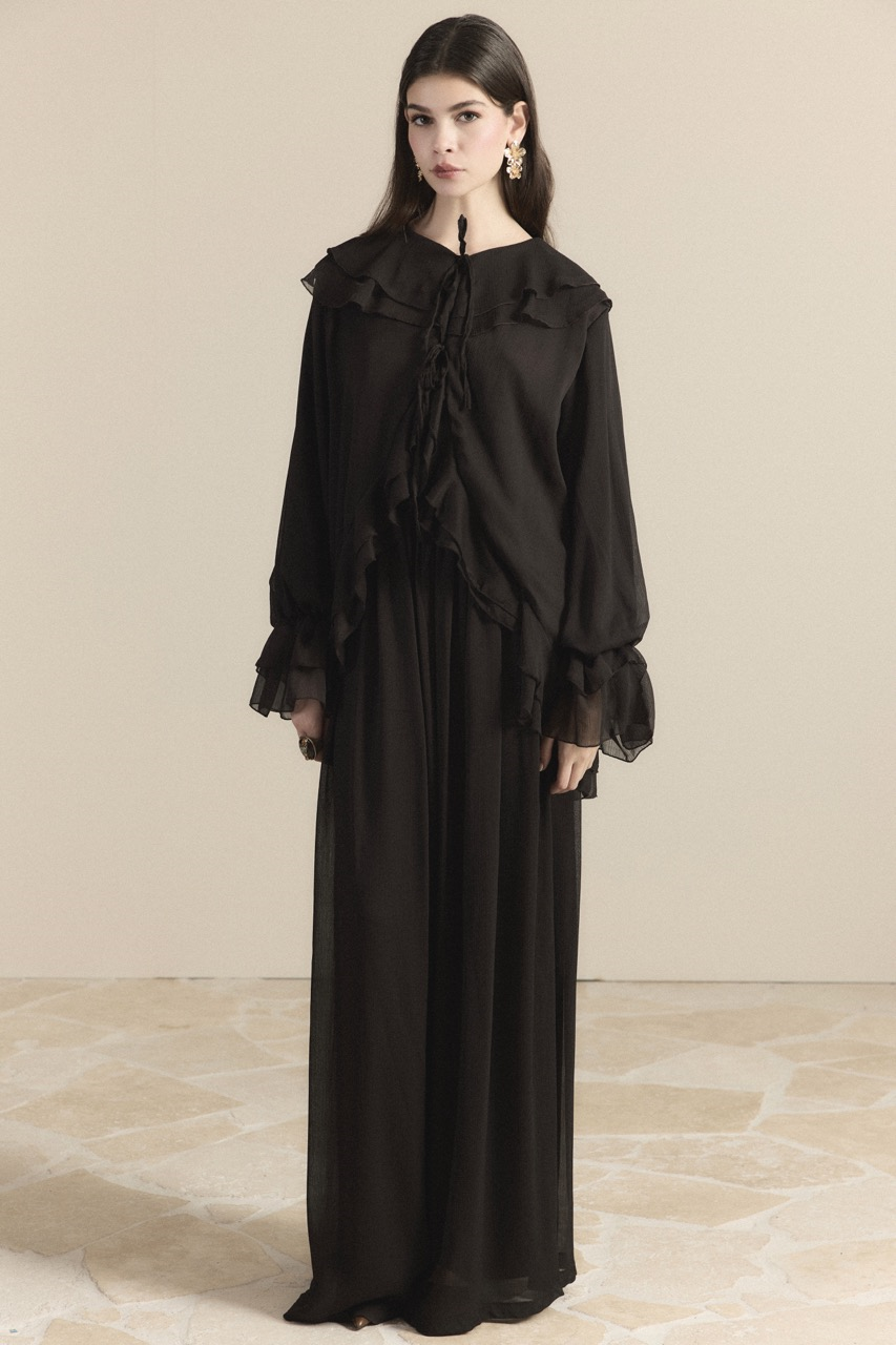 Chiffon Set with Neckline and Sleeve Ruffles – Bitter Coffee