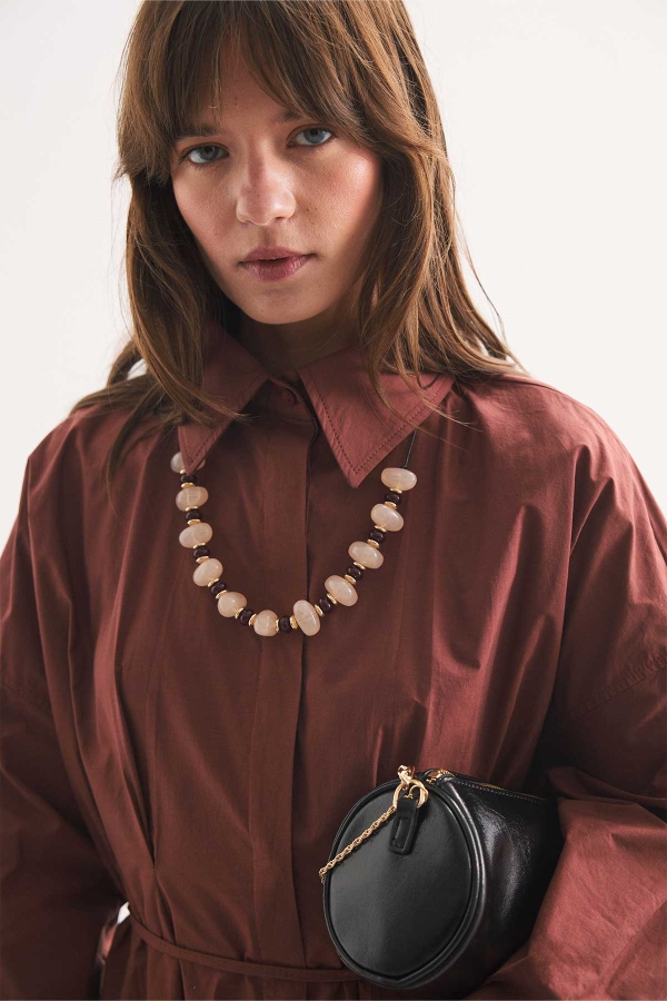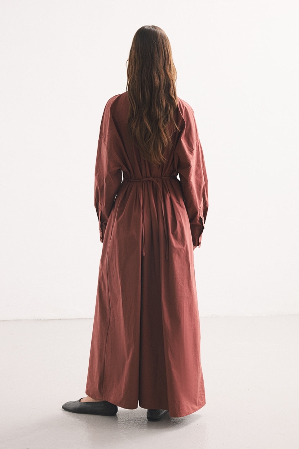 FEATURES OF THE CINNAMON SHIRT DRESS WITH PLEAT DETAIL