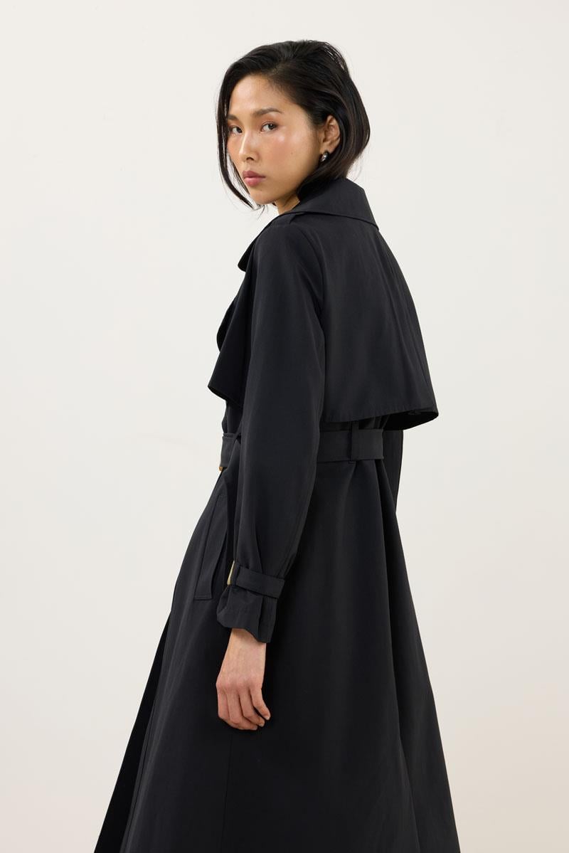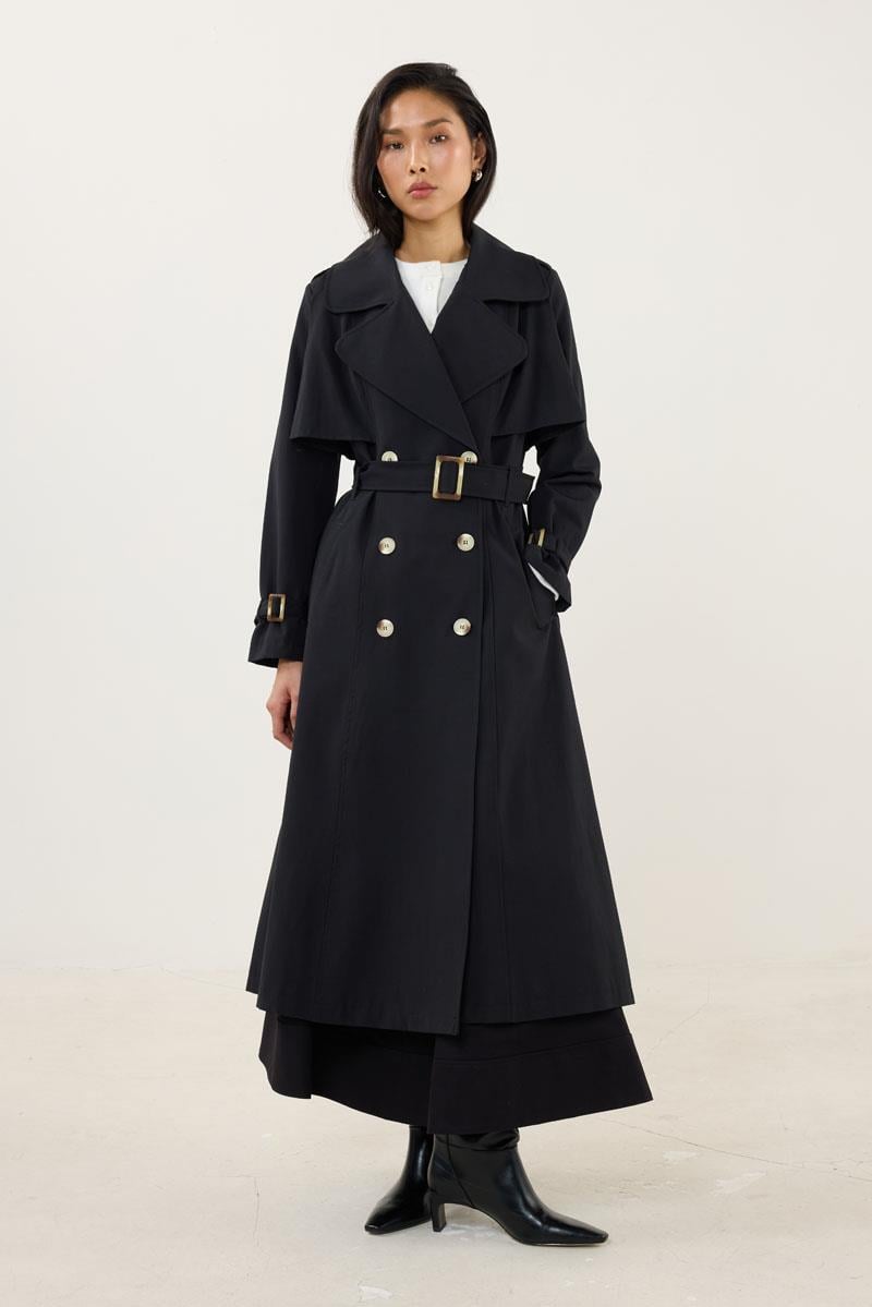 Tags: belted, black coat, Classic, long coat, trench coat, women's outerwear