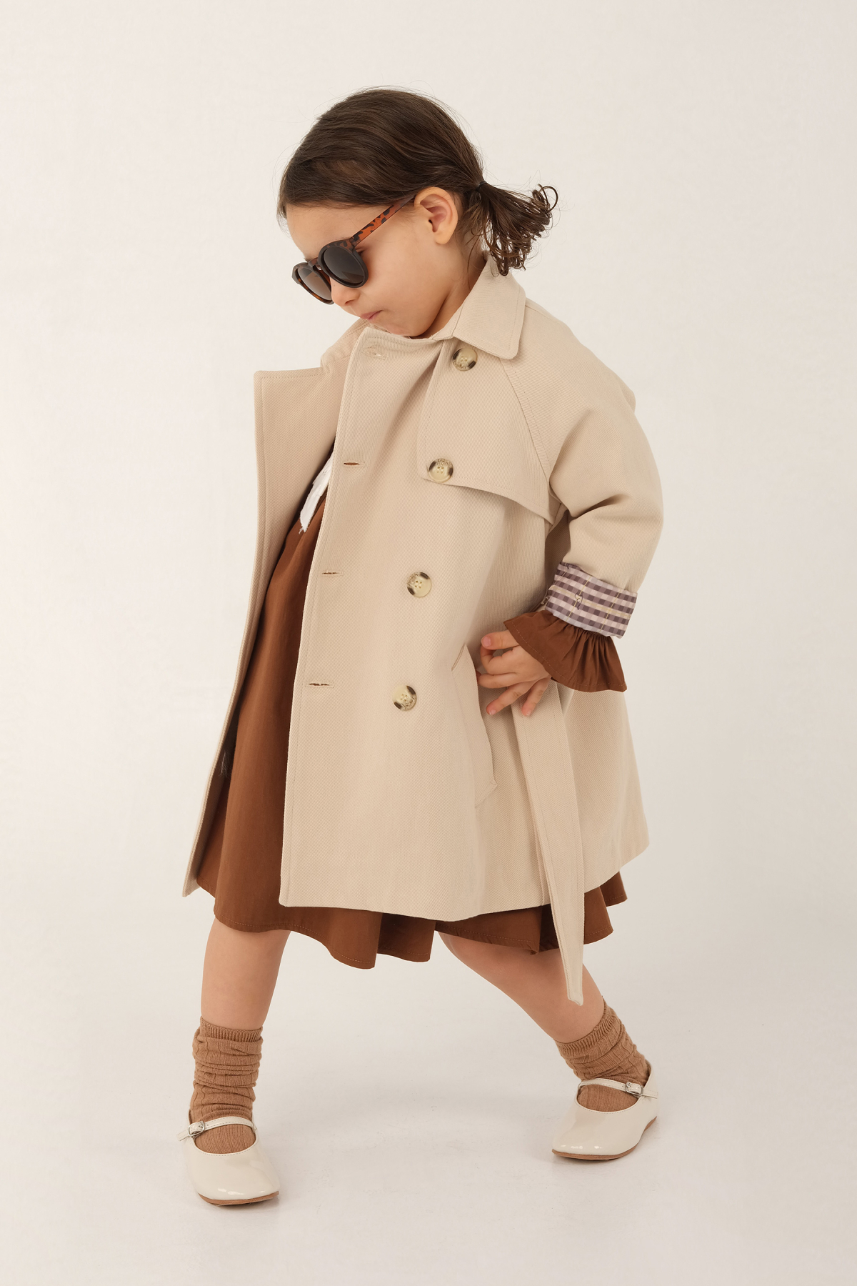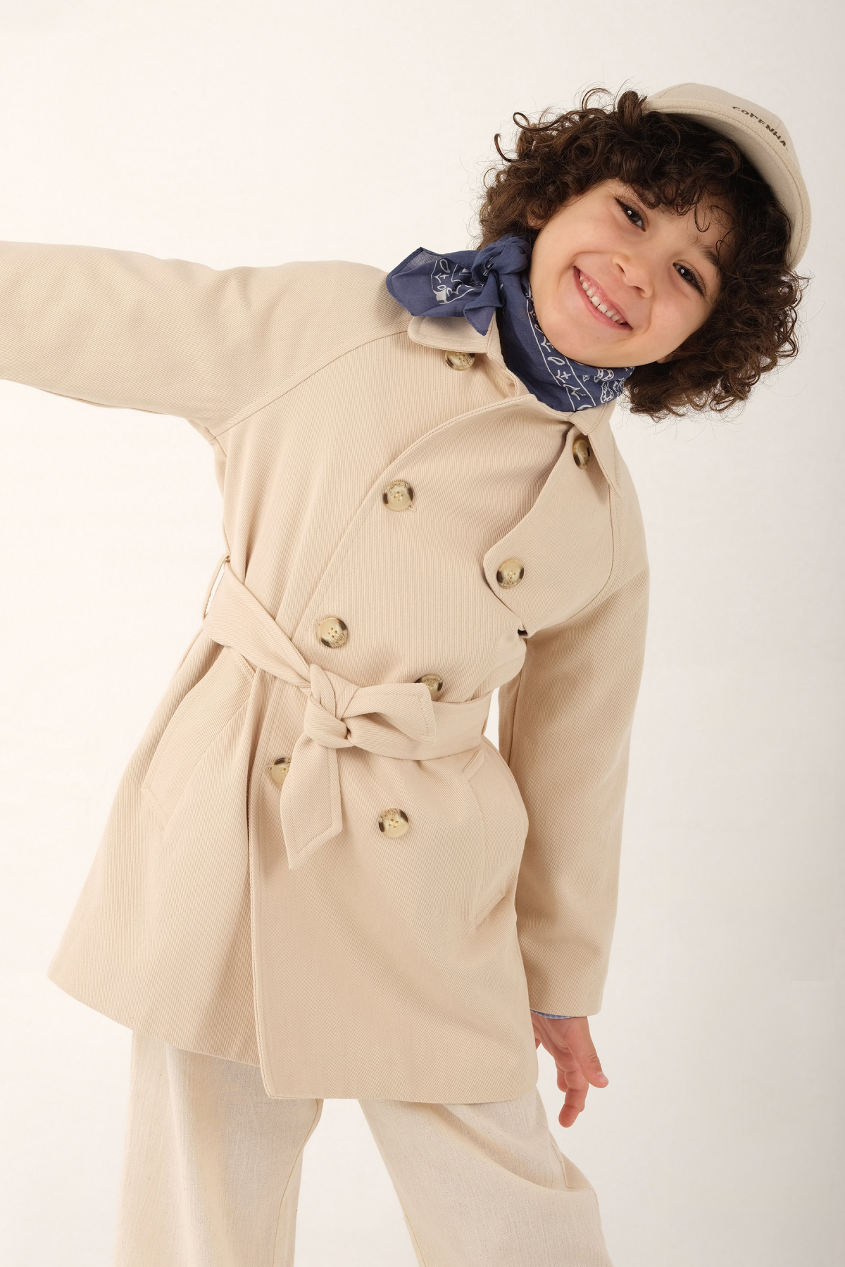 Tags: children's outerwear, classic trench coat, cotton canvas, double-breasted, removable belt