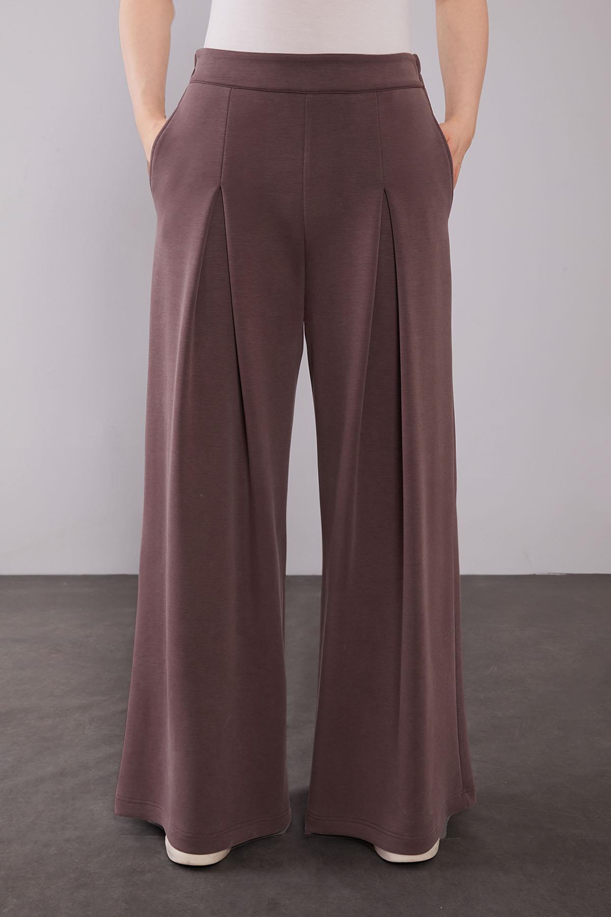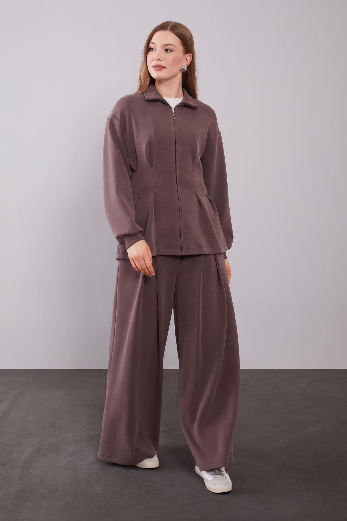 Coffee-Colored Waist-Fitting Pleated Detail Two-Piece Set