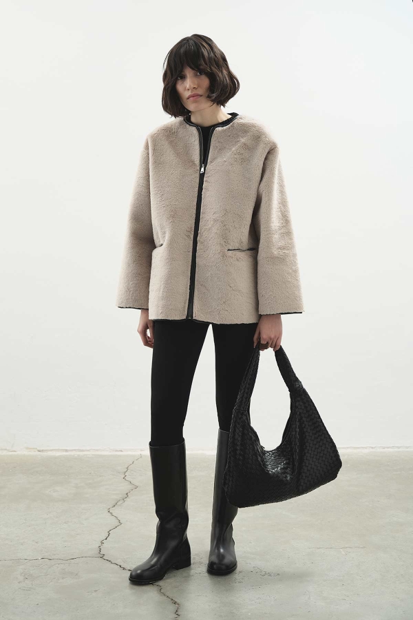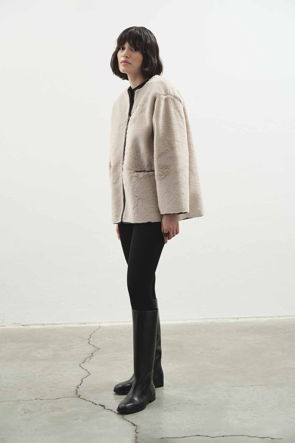 Be the first to review “Contrast Leather Trimmed Faux Fur Beige Coat” Cancel reply
