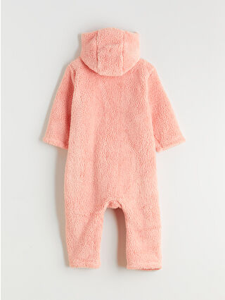 Coral Hooded Plush Baby Girl Jumpsuit