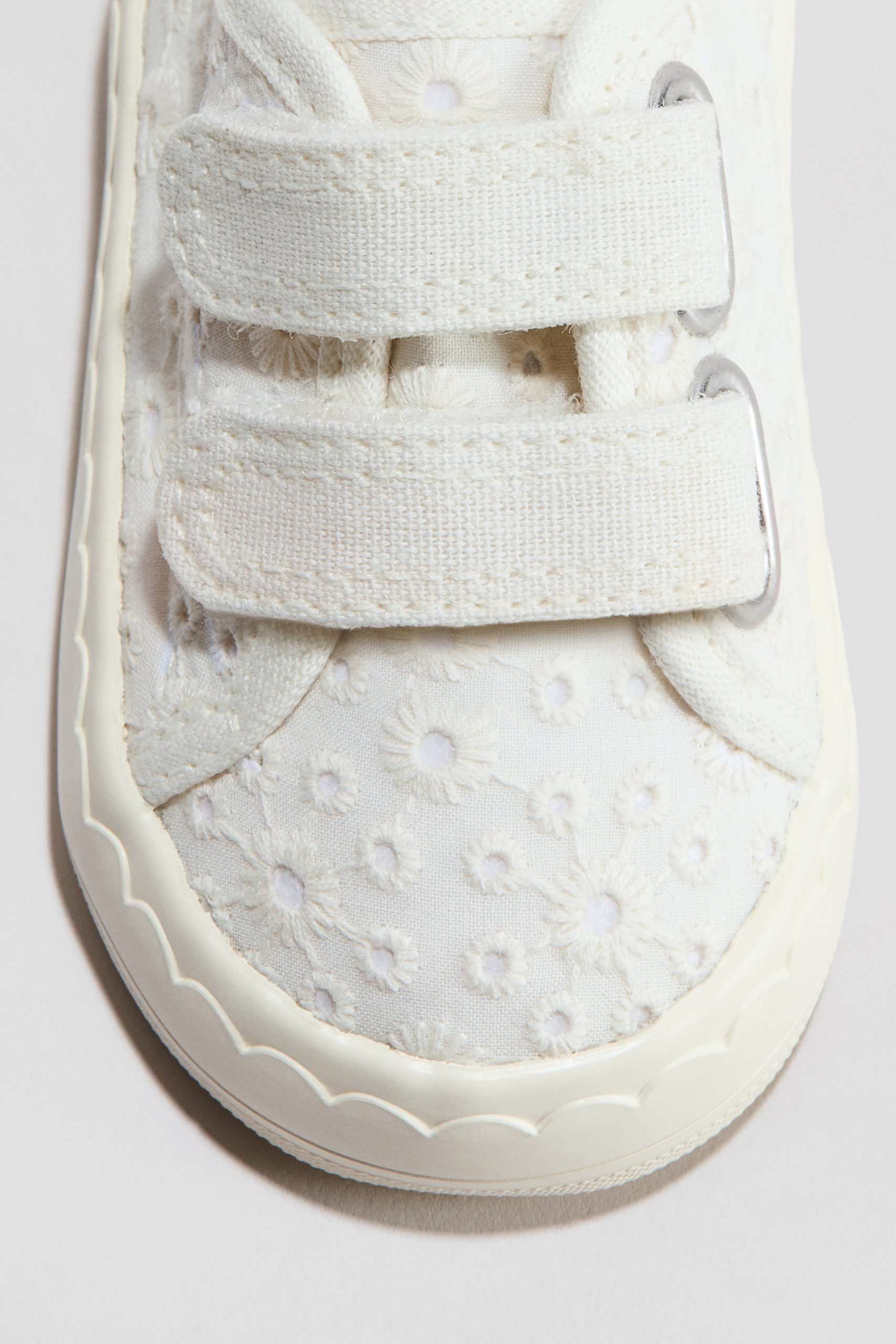 Canvas sneakers made from cotton canvas, featuring a front Velcro strap and grosgrain loop at the back. Lined with canvas and equipped with a technical foam insole for extra comfort. Features a patterned outsole.