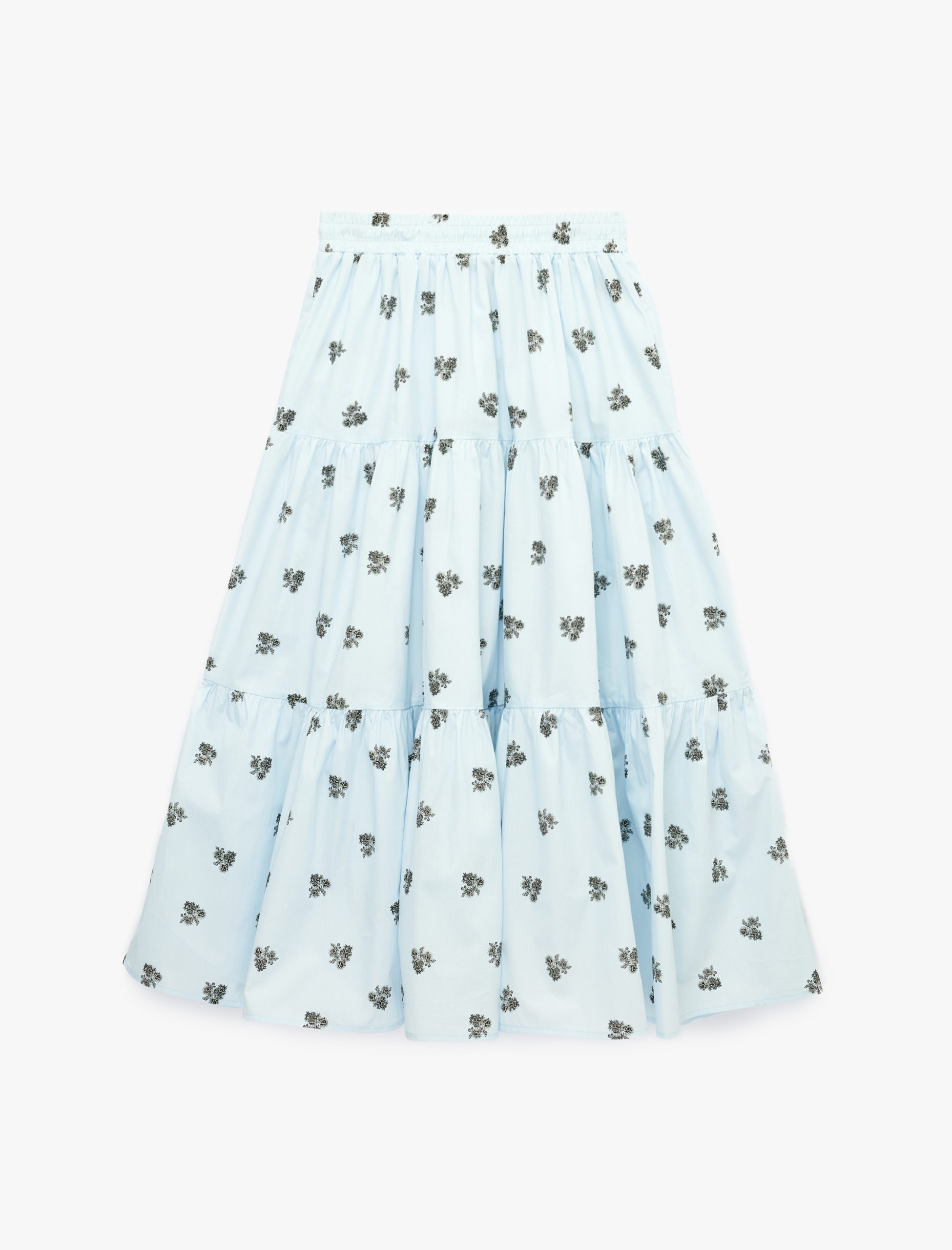 Cotton Layered Flared Full Circle Long Floral Poplin Skirt