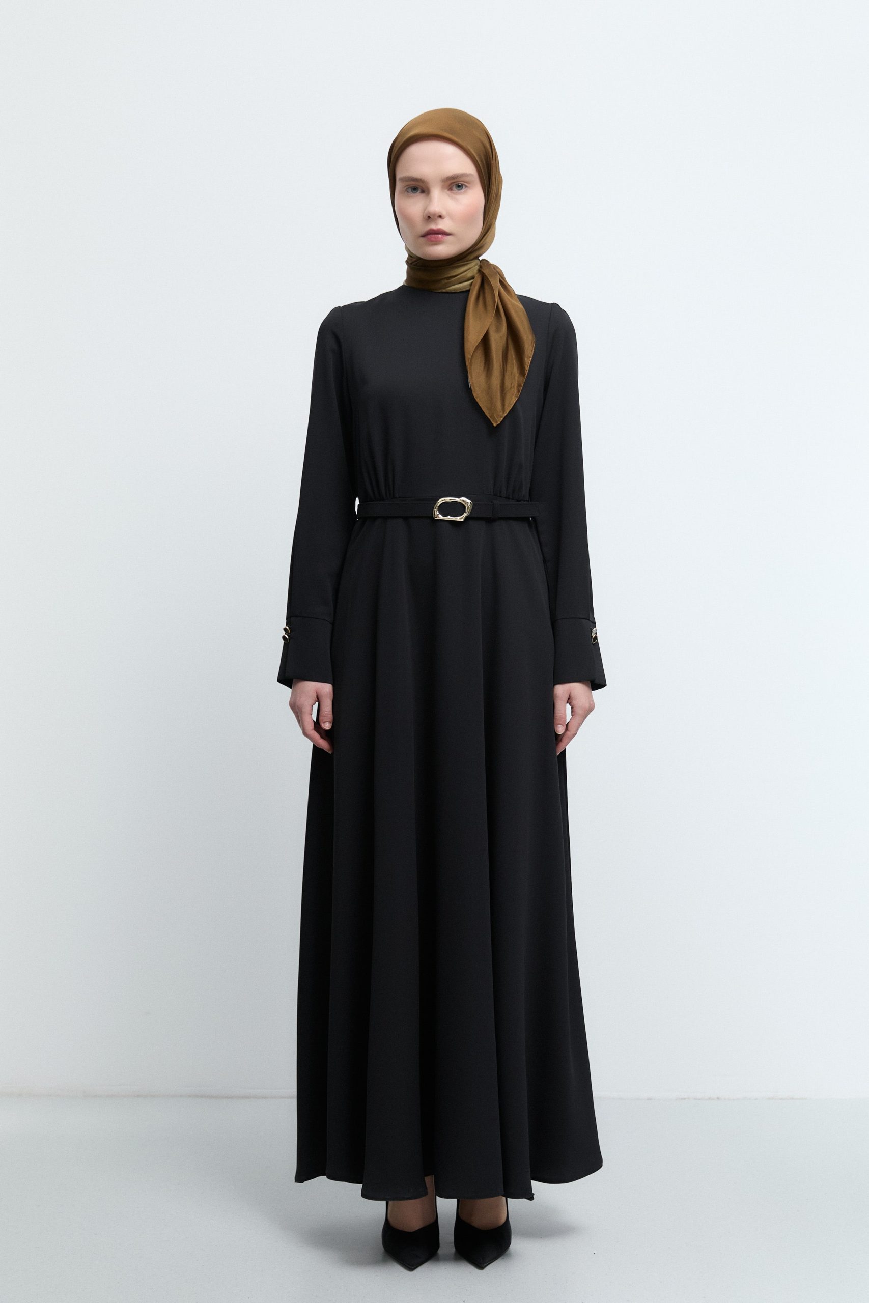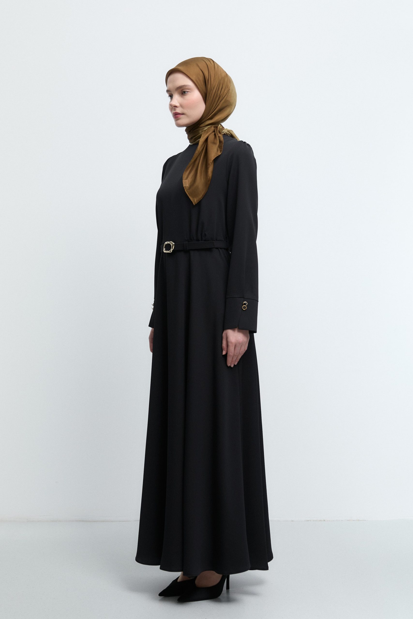 Tags: black dress, covered button, dress, formal wear, long sleeve, polyester dress, women's fashion