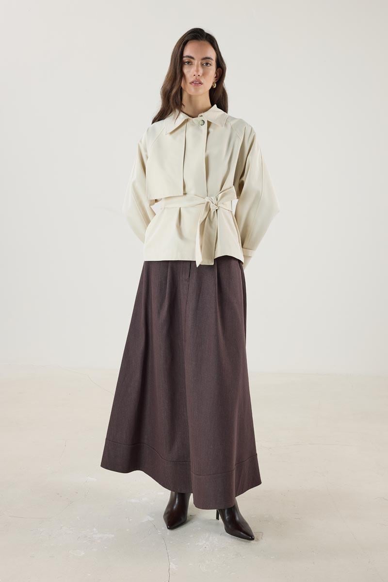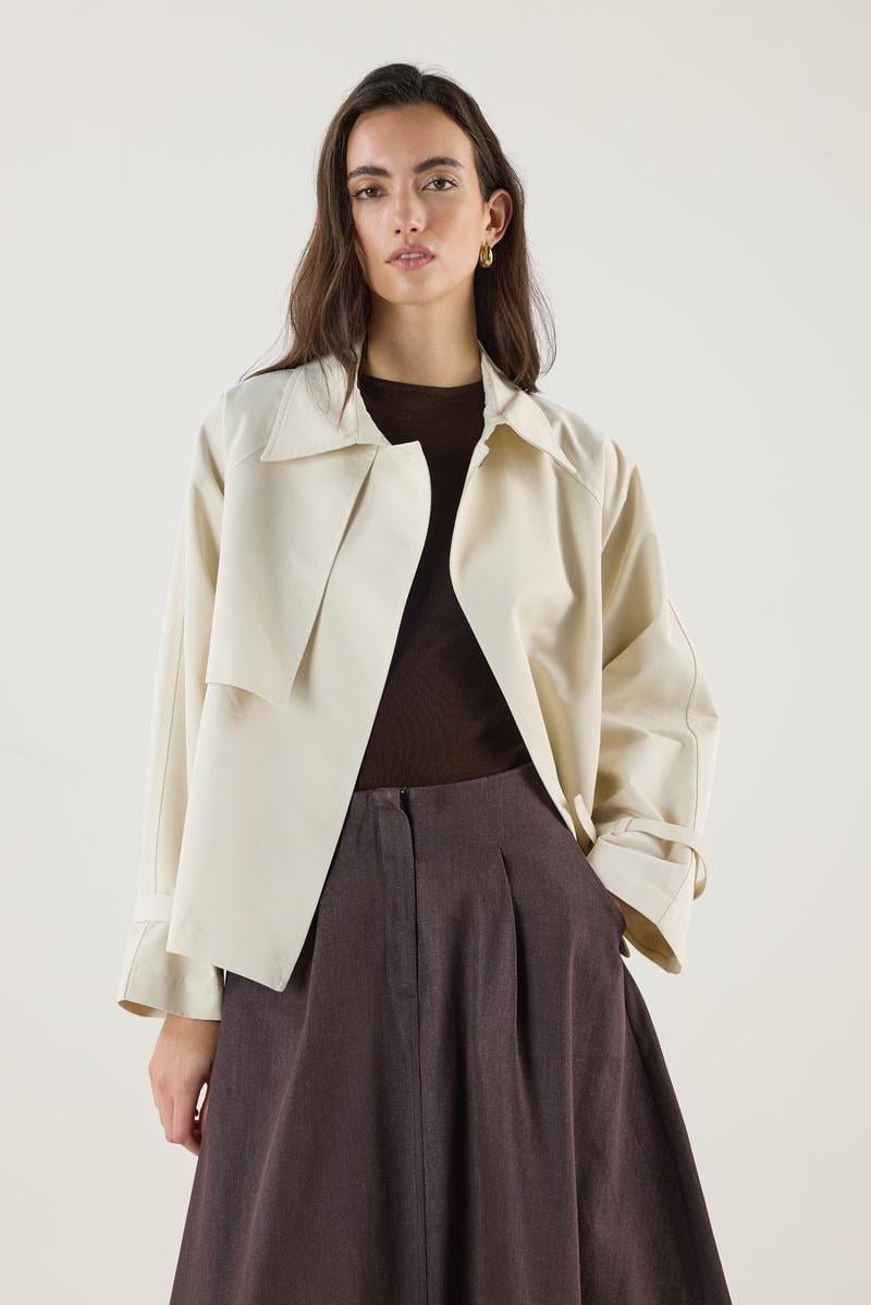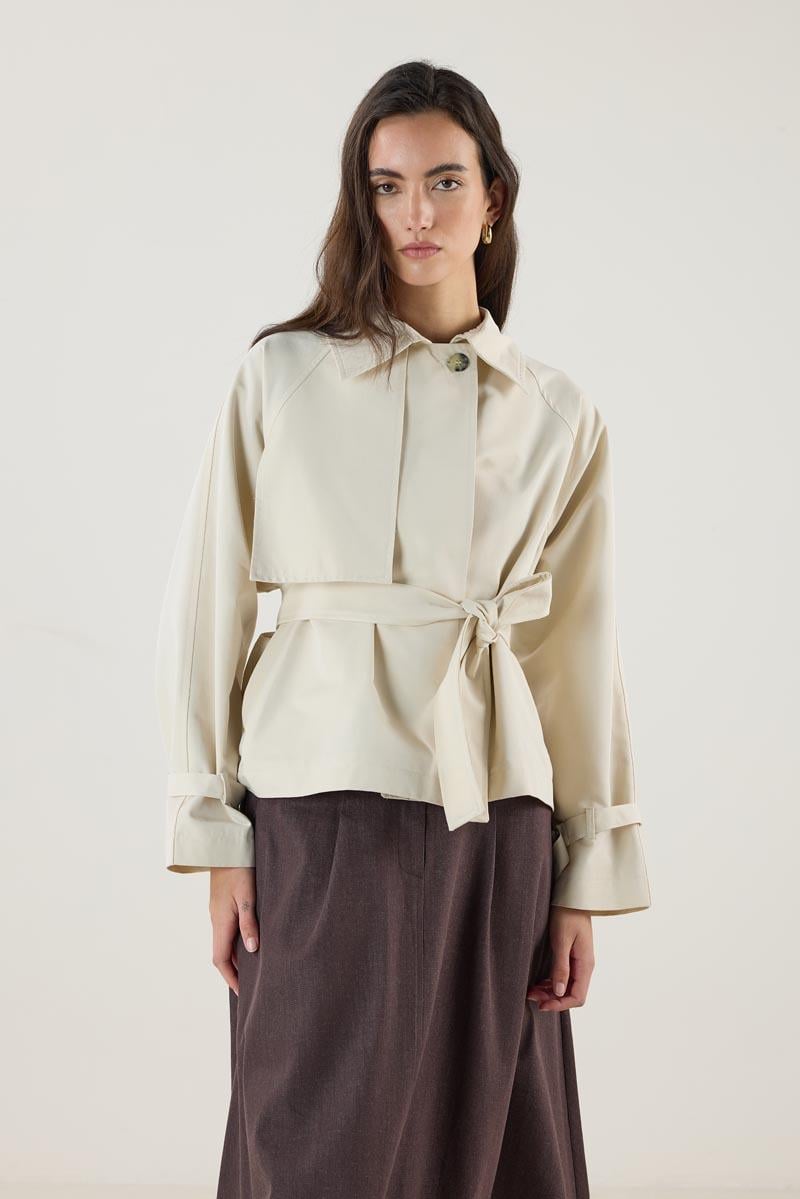 Be the first to review “Cream Short Trench Coat with Belt and Pockets” Cancel reply