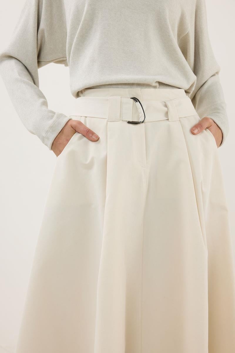 Tags: Belted Waist, cotton polyester blend, cream skirt, pockets, regular fit, seasonal fashion, split hem, women's skirt