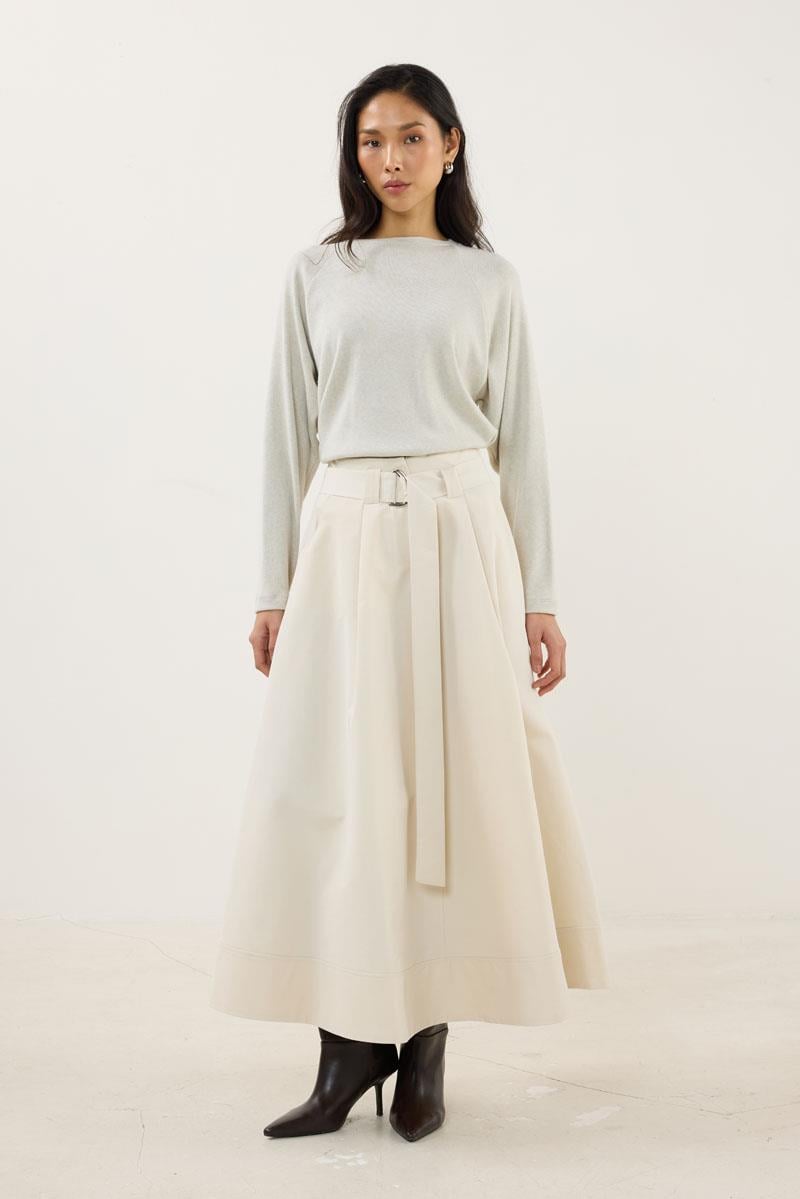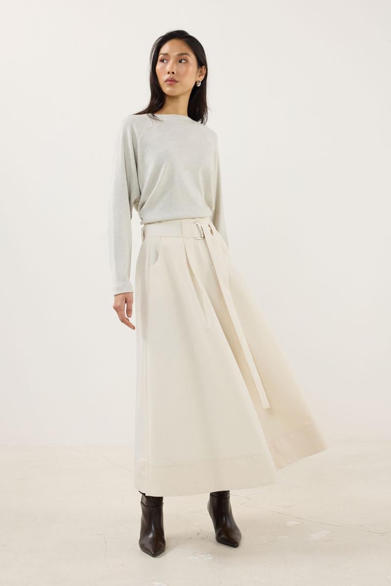 Cream Skirt with Split Hem and Belted Waist