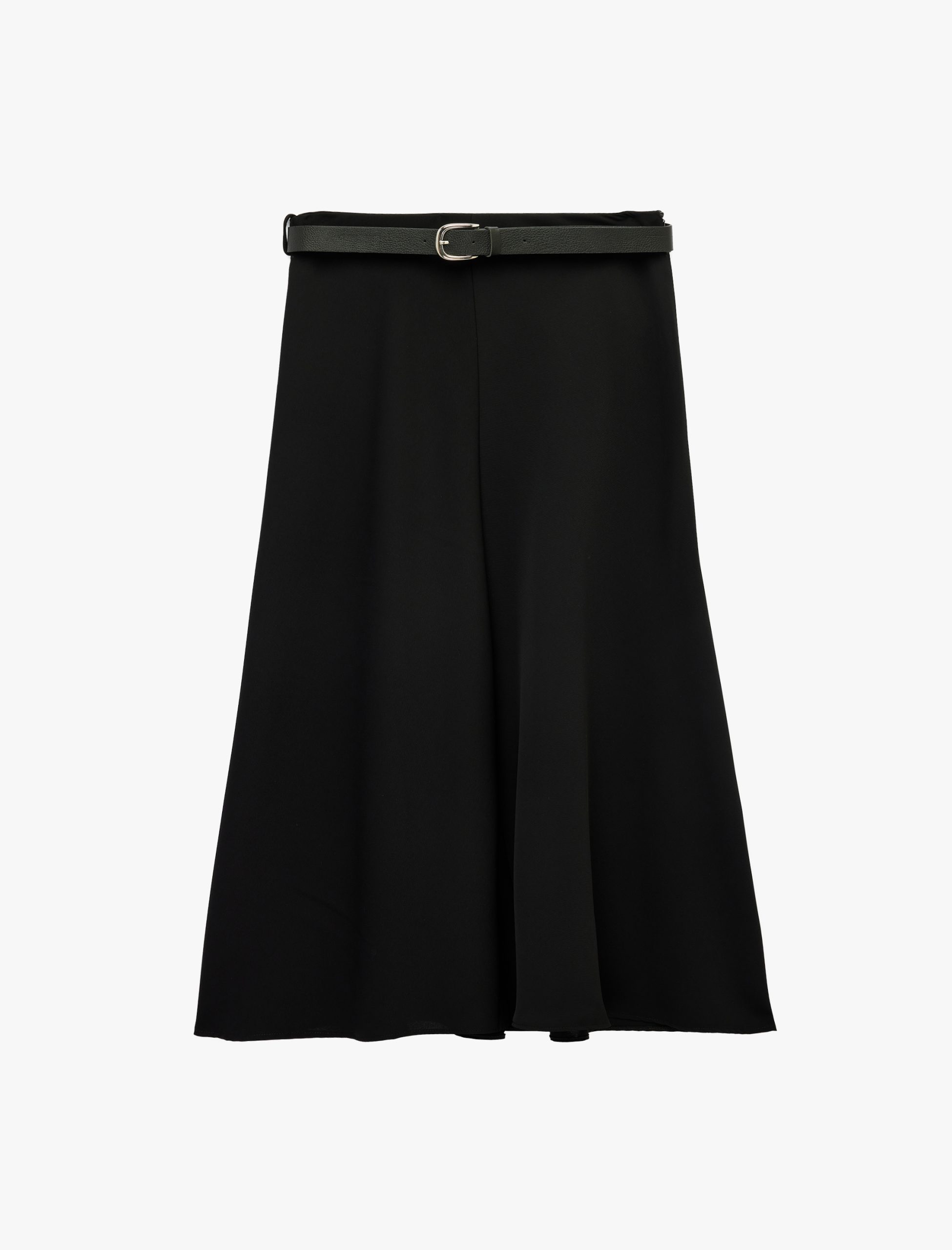 Crepe Fabric Belt Detail A-Line Midi Skirt