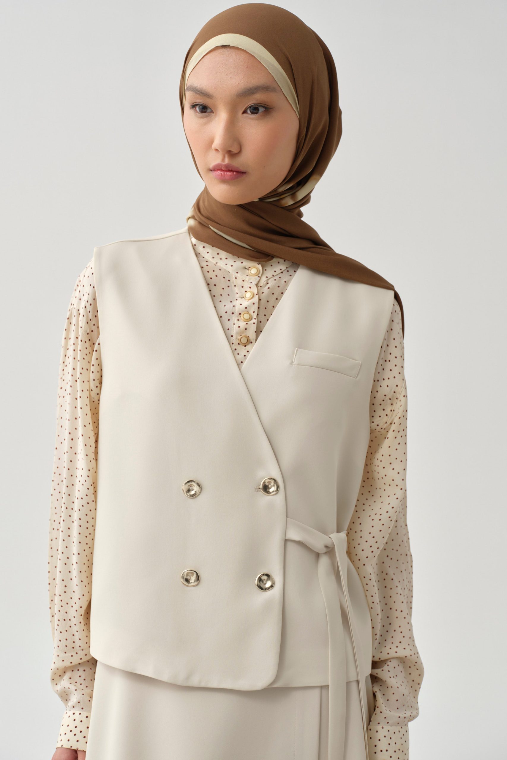 This mini vest with a crossover cut showcases a sophisticated posture, offering a modern and chic style. Its structured form provides an elegant appearance, making it a perfect complement for layered outfits.