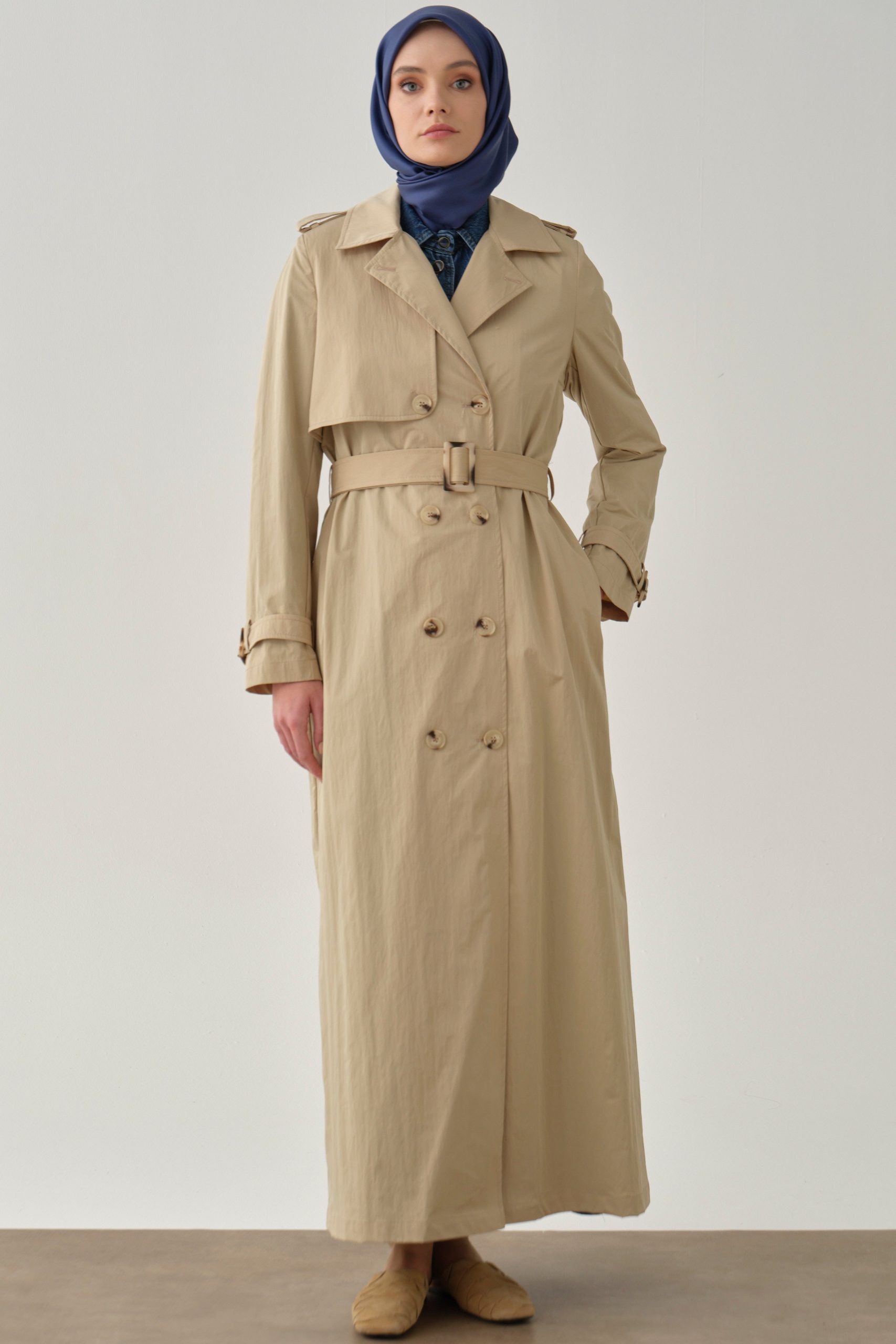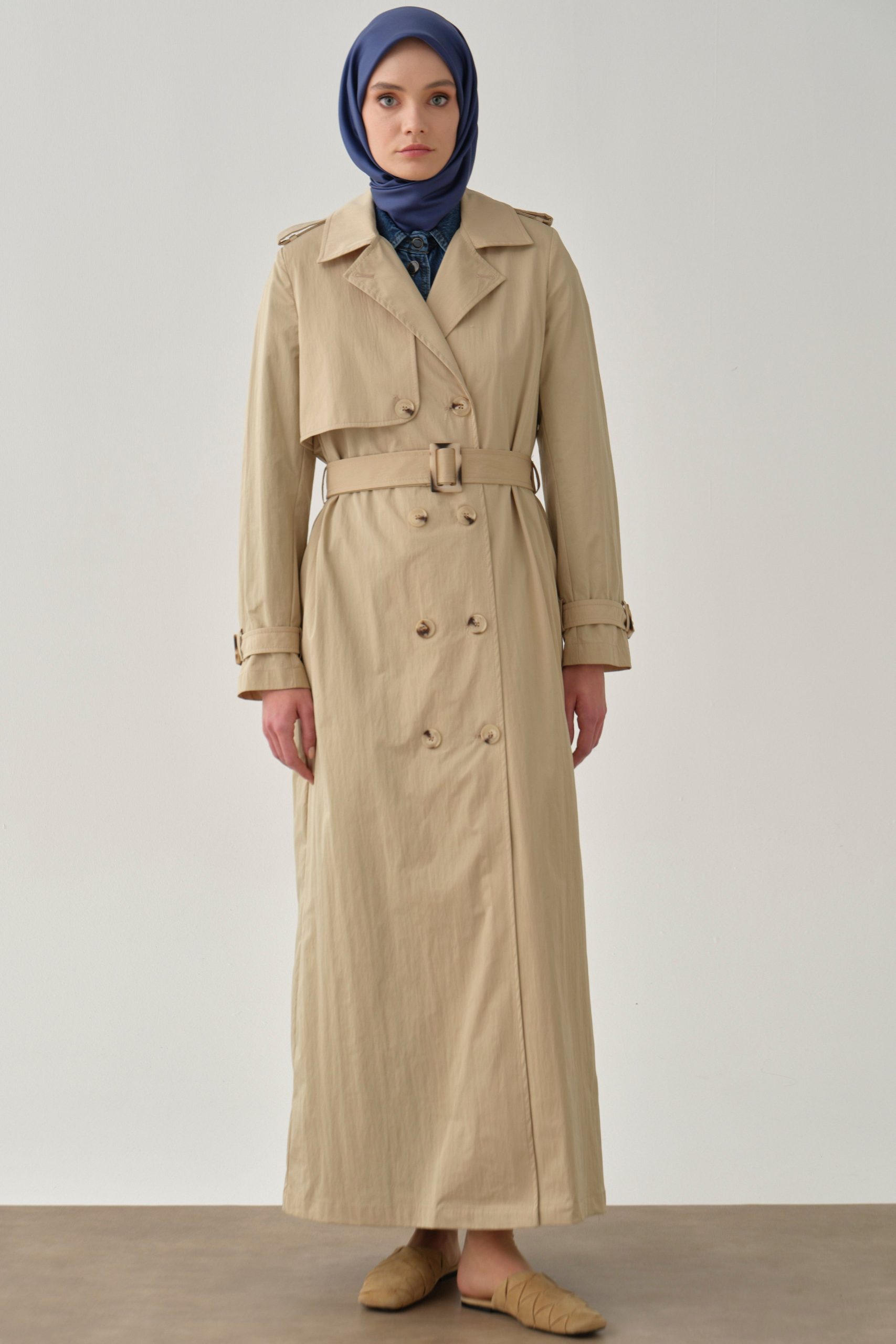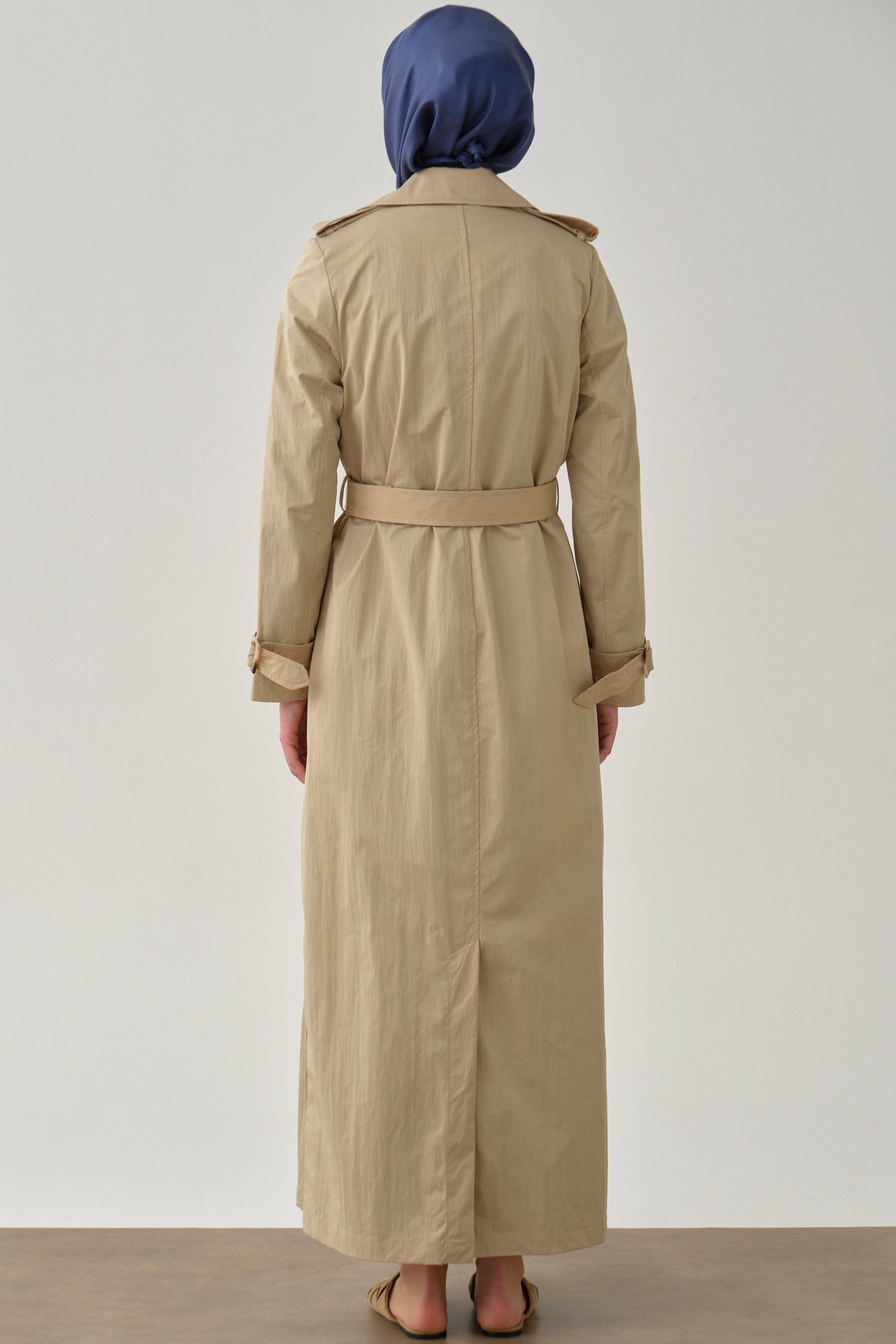 Crossover Sleeve Belted Overcoat – Stone