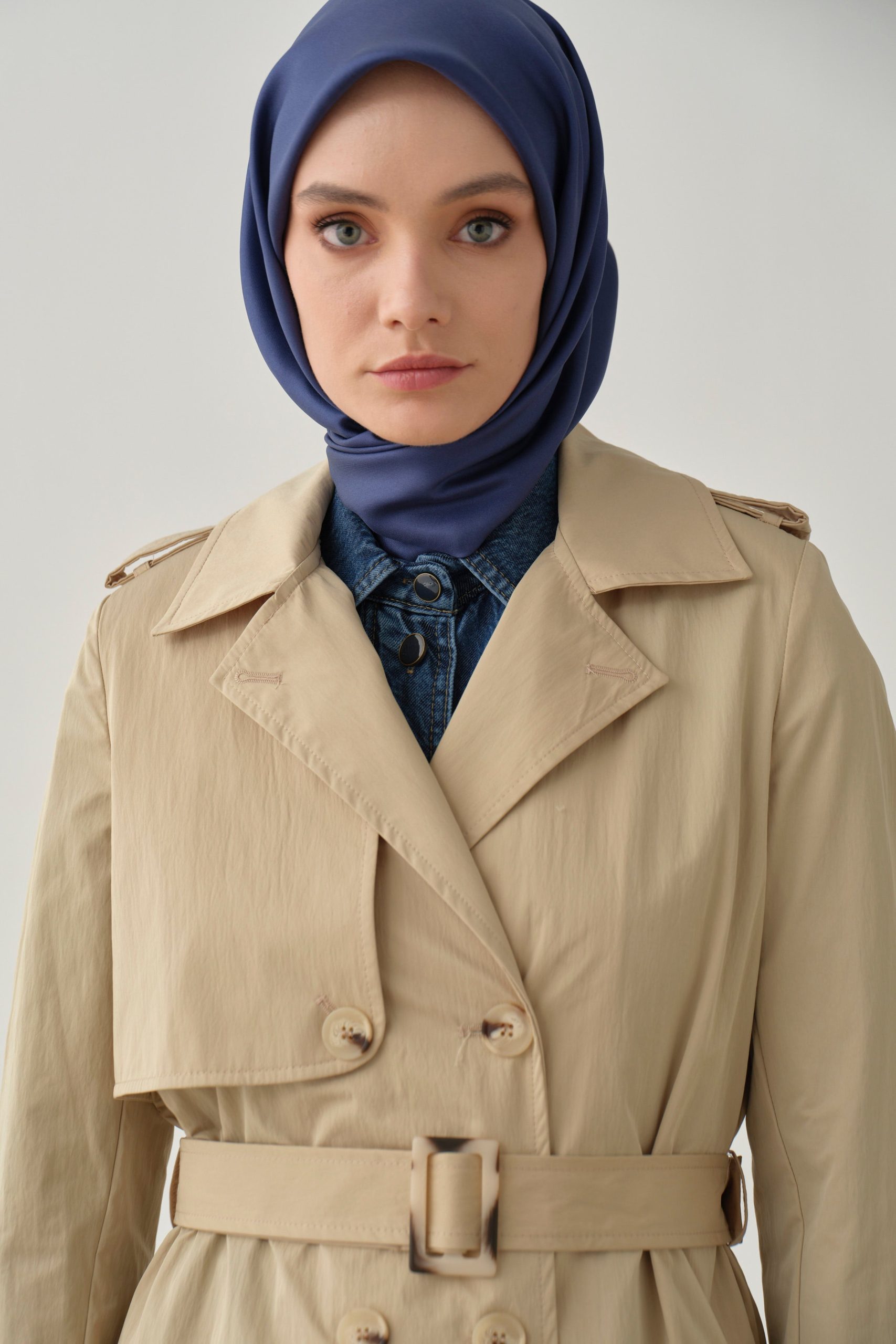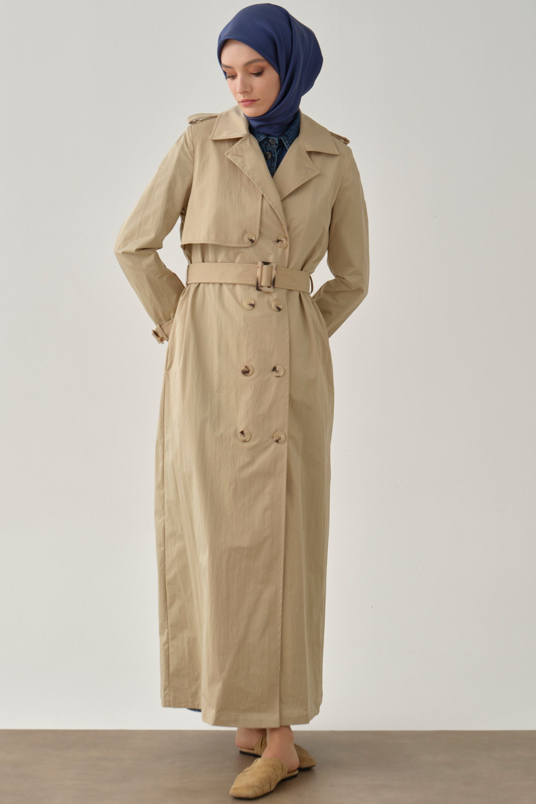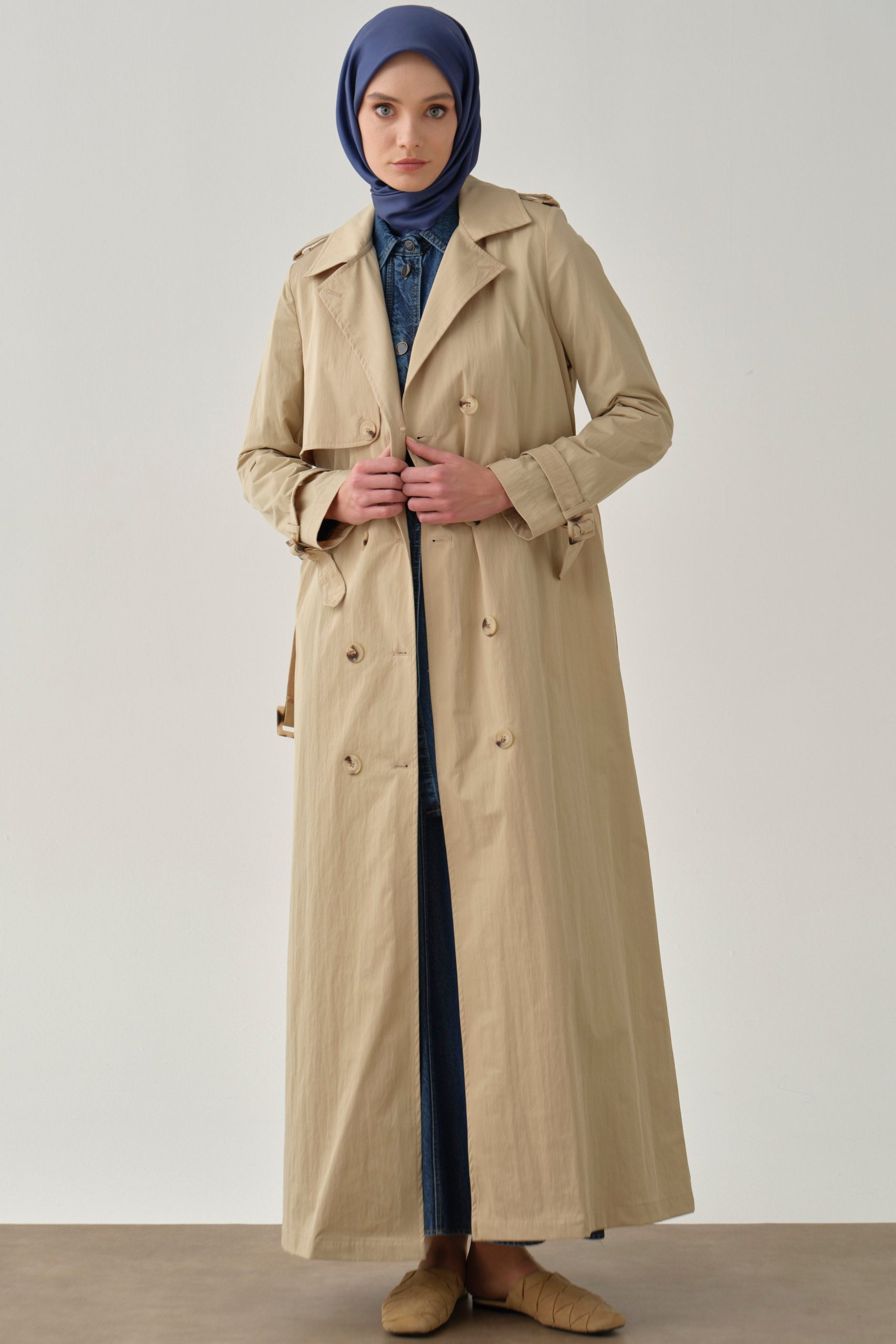 Crossover Sleeve Belted Overcoat – Stone