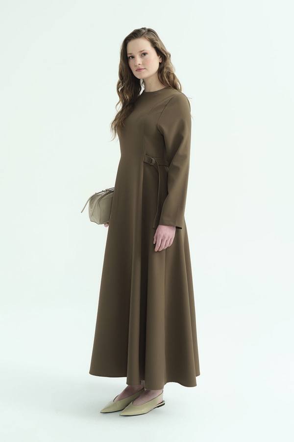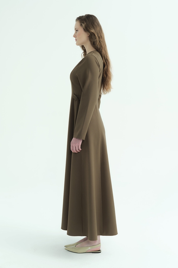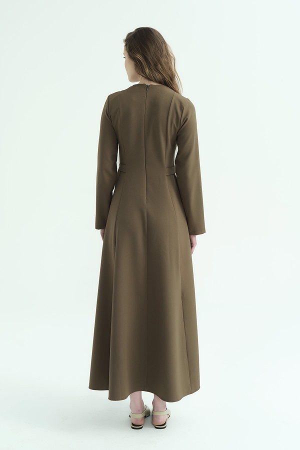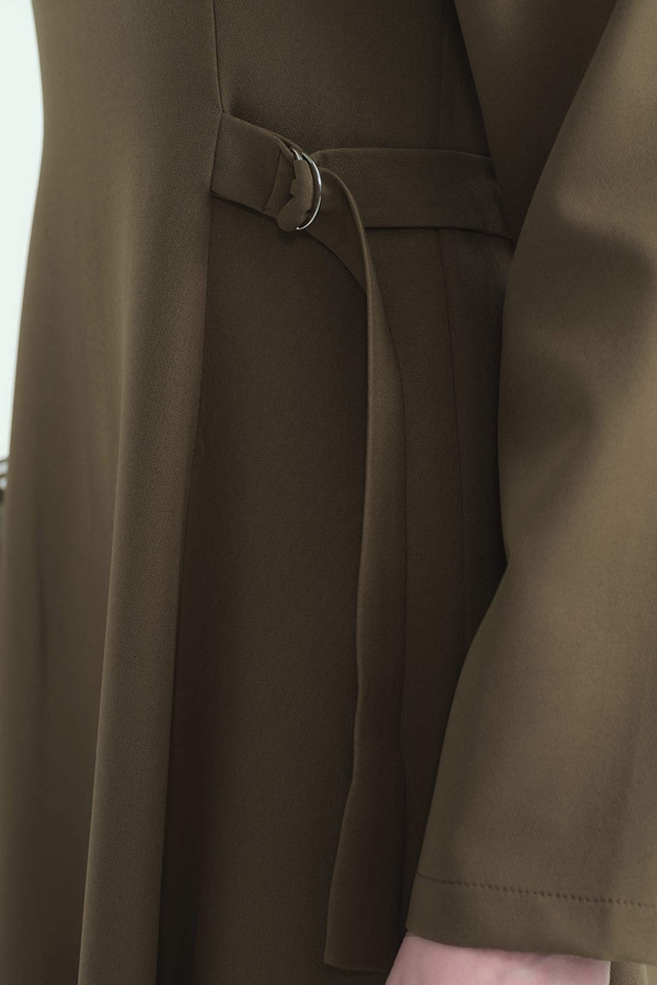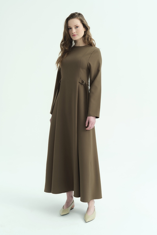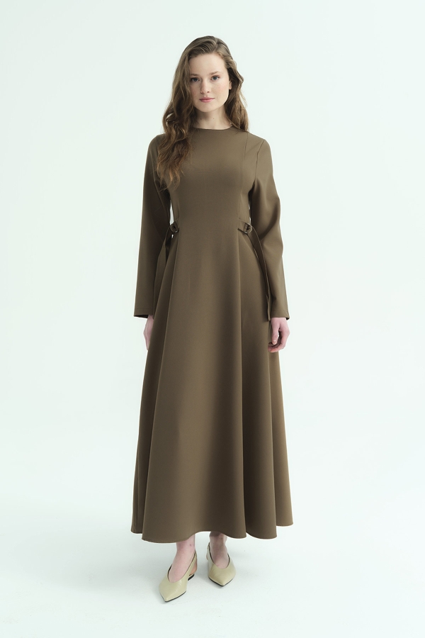 D BUCKLE DETAILED LONG KHAKI DRESS FEATURES