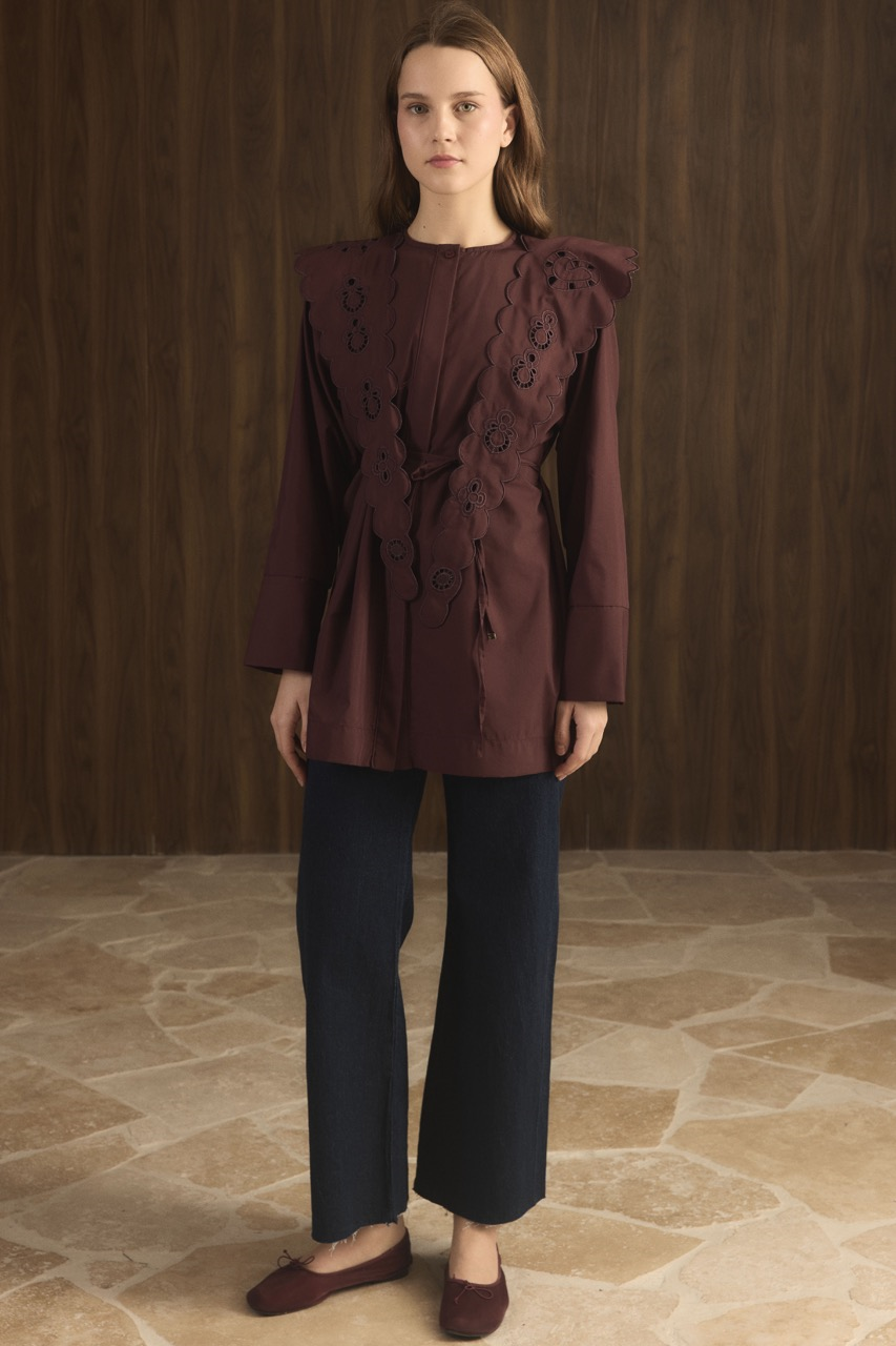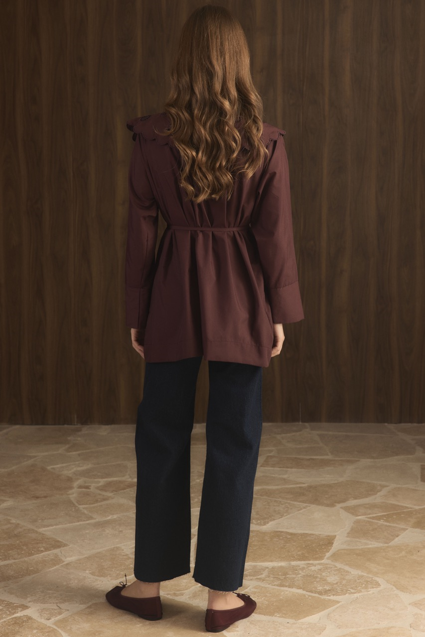 Dacron Shirt with Collar Embroidery – Burgundy