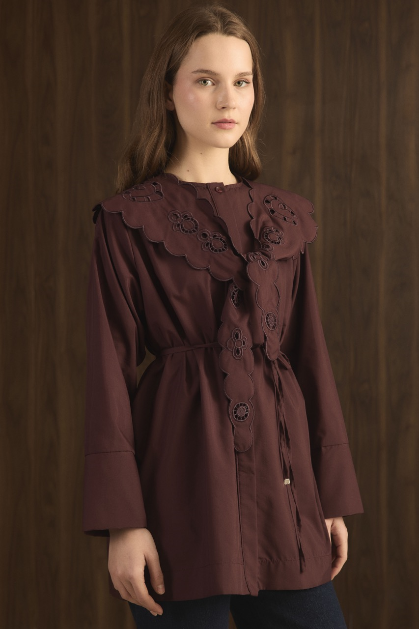 This stylish Dacron shirt features elegant collar embroidery, offering a sophisticated look with comfortable wear. Perfect for both casual and semi-formal occasions, its burgundy color adds a touch of classic charm to your wardrobe.