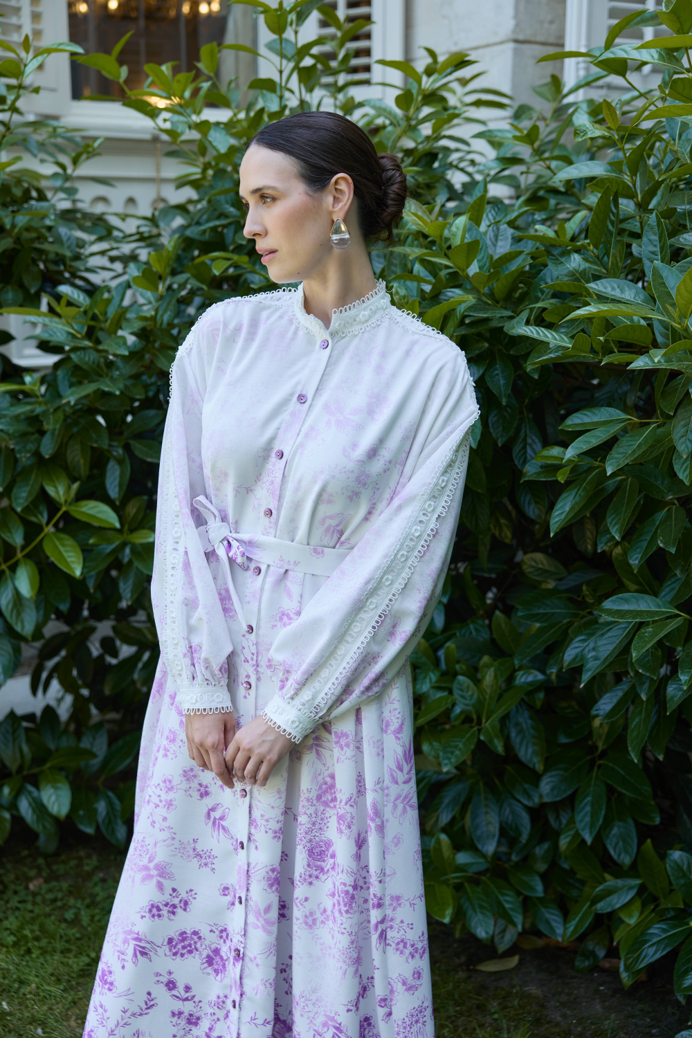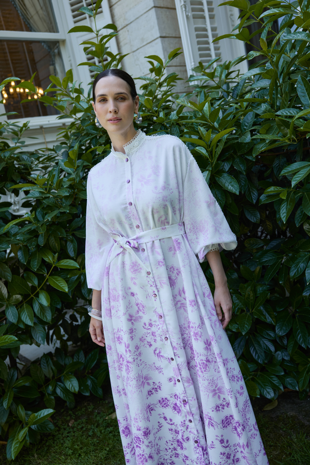 DEGRADE DESENLİ KETEN ELBİSE LİLA