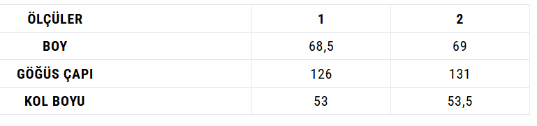 1 beden 36/38, 2 beden 40/42 beden aralığı için uygundur.