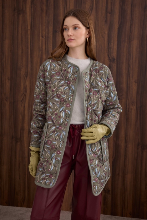 Desenli Kapitone Ceket Karanfil Desen