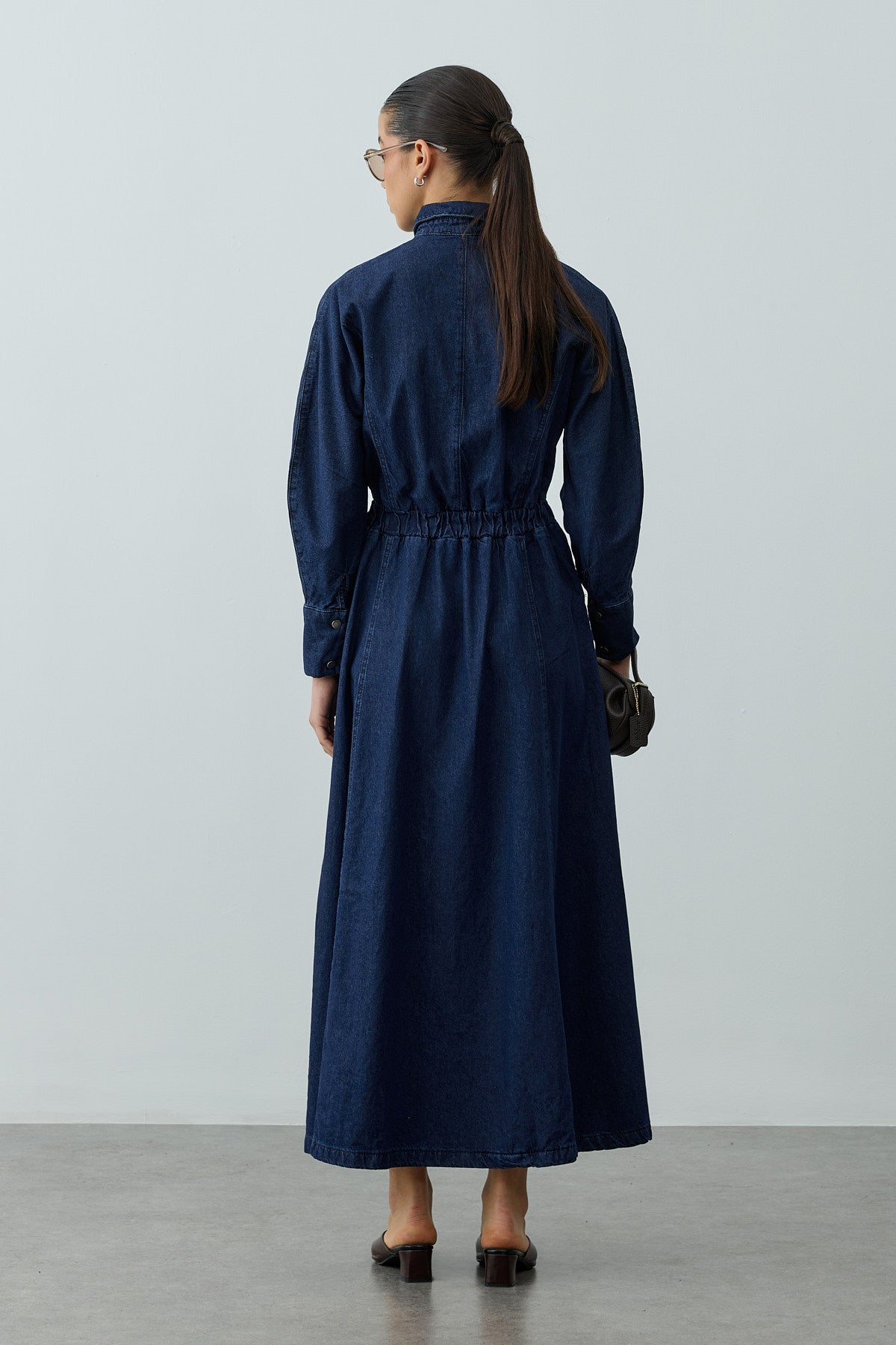 Tags: balloon sleeves, cotton, denim dress, maxi dress, navy blue, shirt collar, women's fashion
