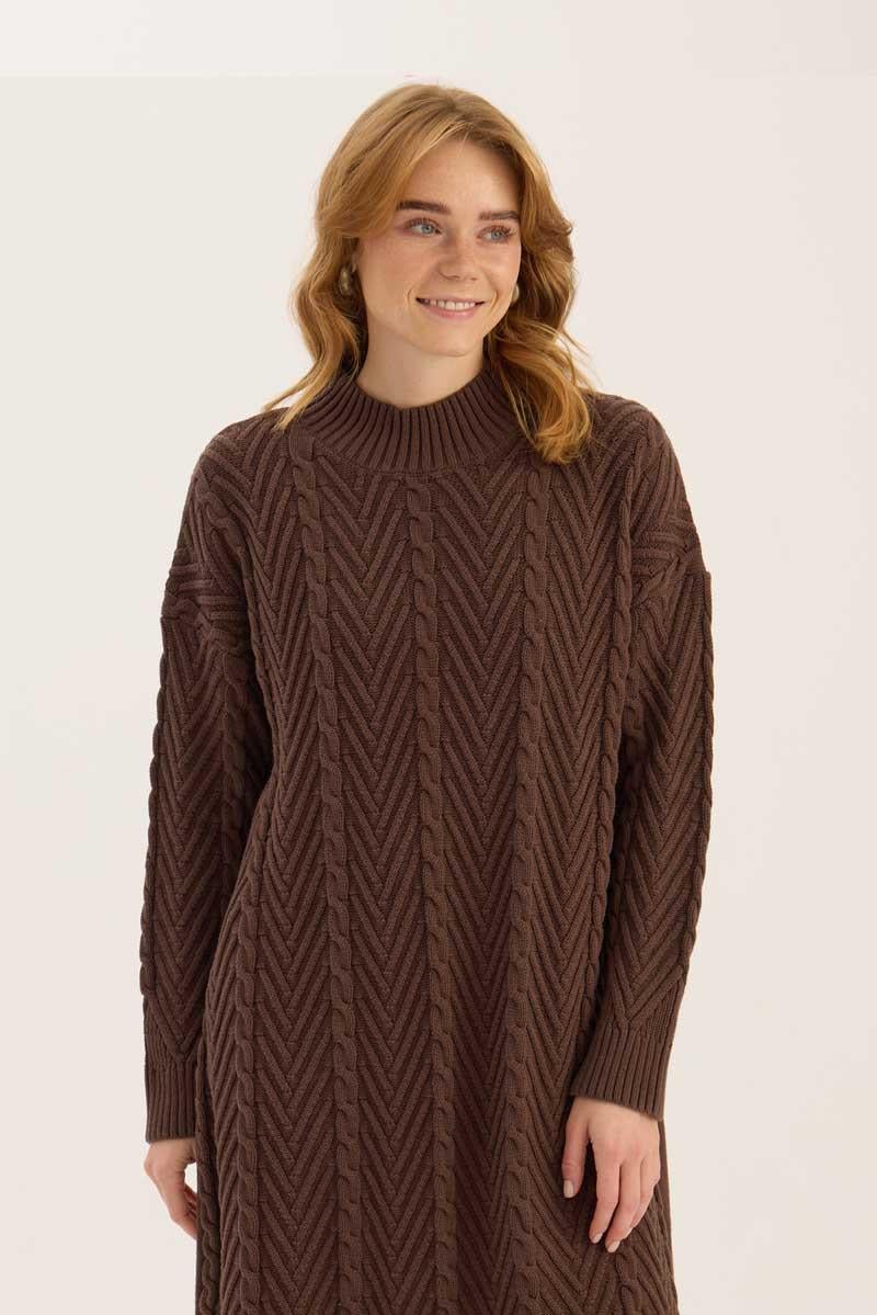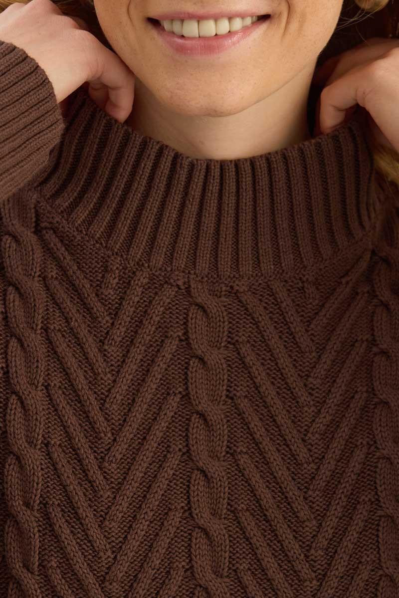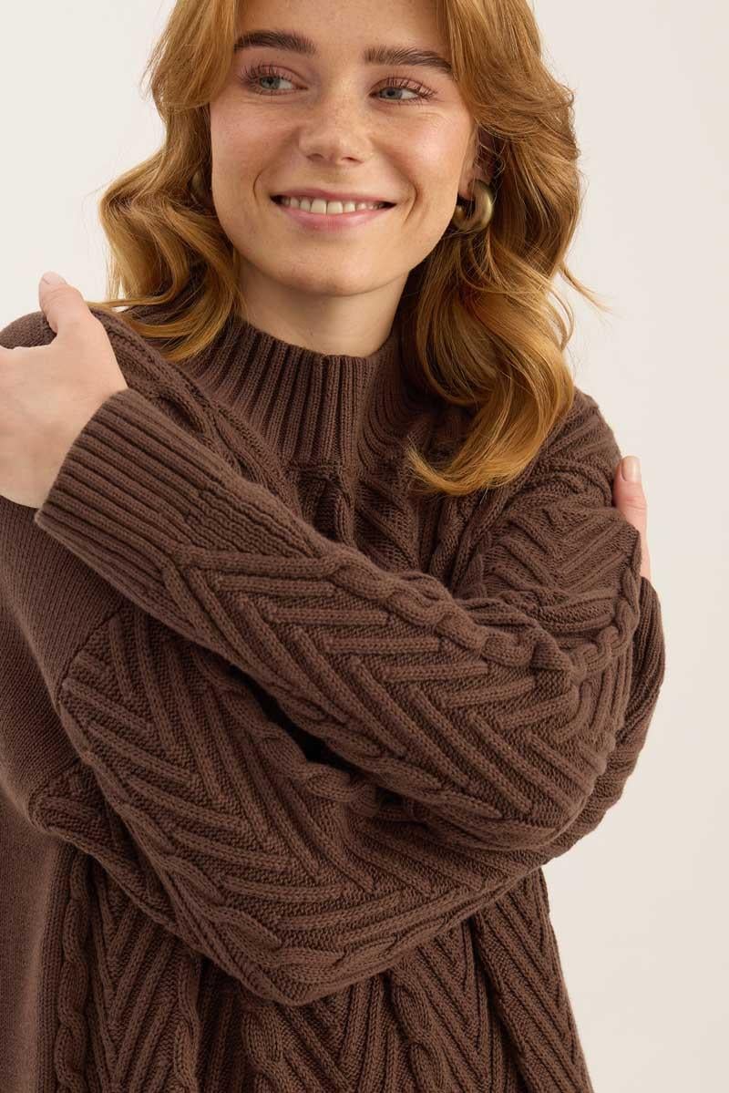 Tags: bitter brown, casual wear, cotton sweater, diagonal pattern, knitwear, winter sweater, women's fashion