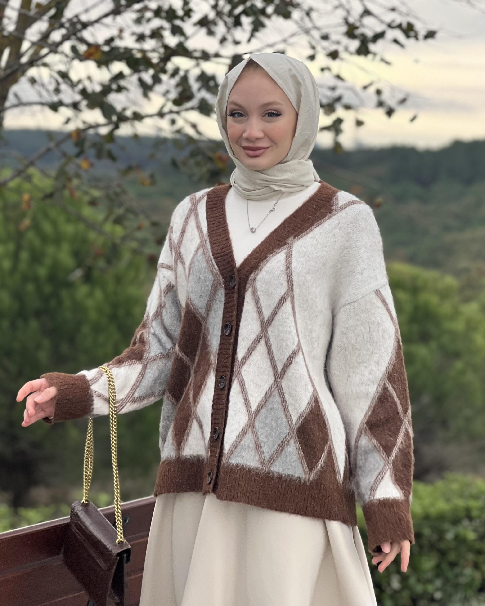 DİLVİN BAKLAVA DESEN HIRKA Kahverengi