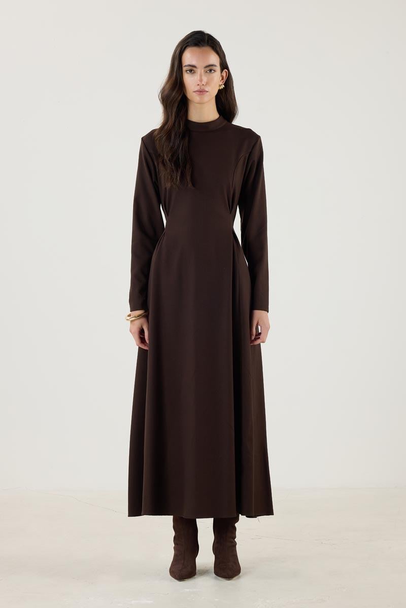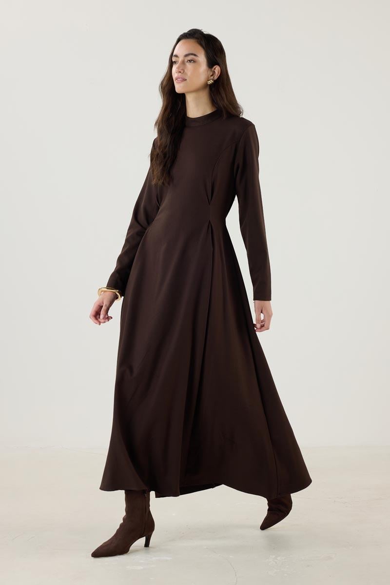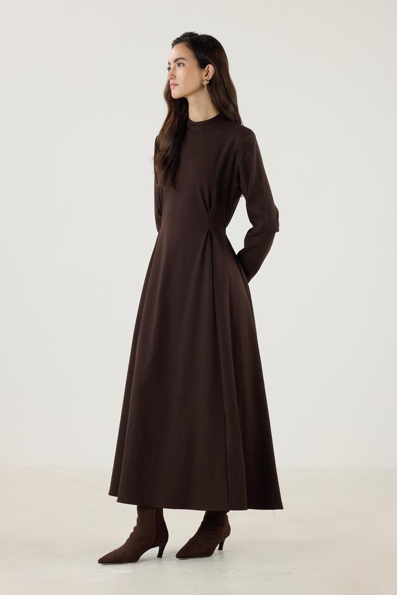 Double Pleated High Neck Dress – Bitter Brown