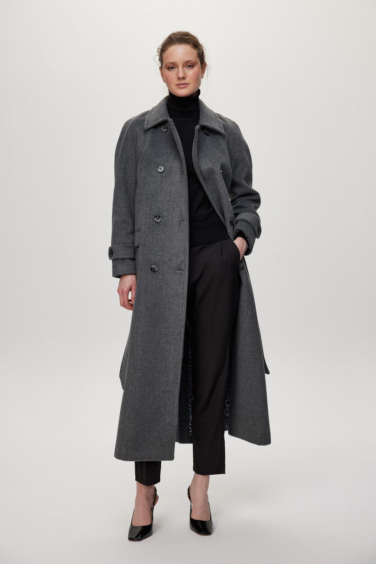 Double-Pocket Belted Smoke Cashmere Coat 13659
