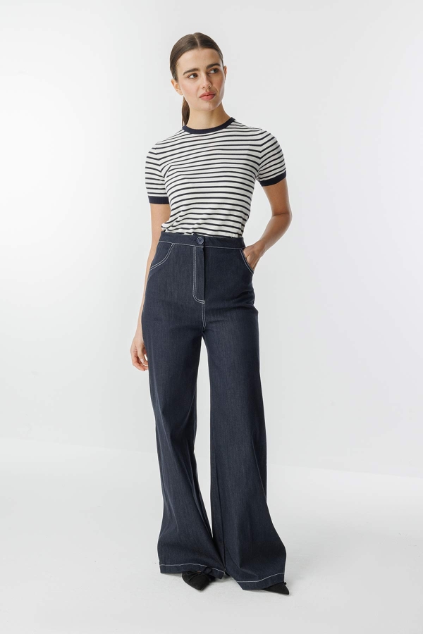 Be the first to review “Double-Stitch Detail Wide-Leg Navy Denim Trousers” Cancel reply