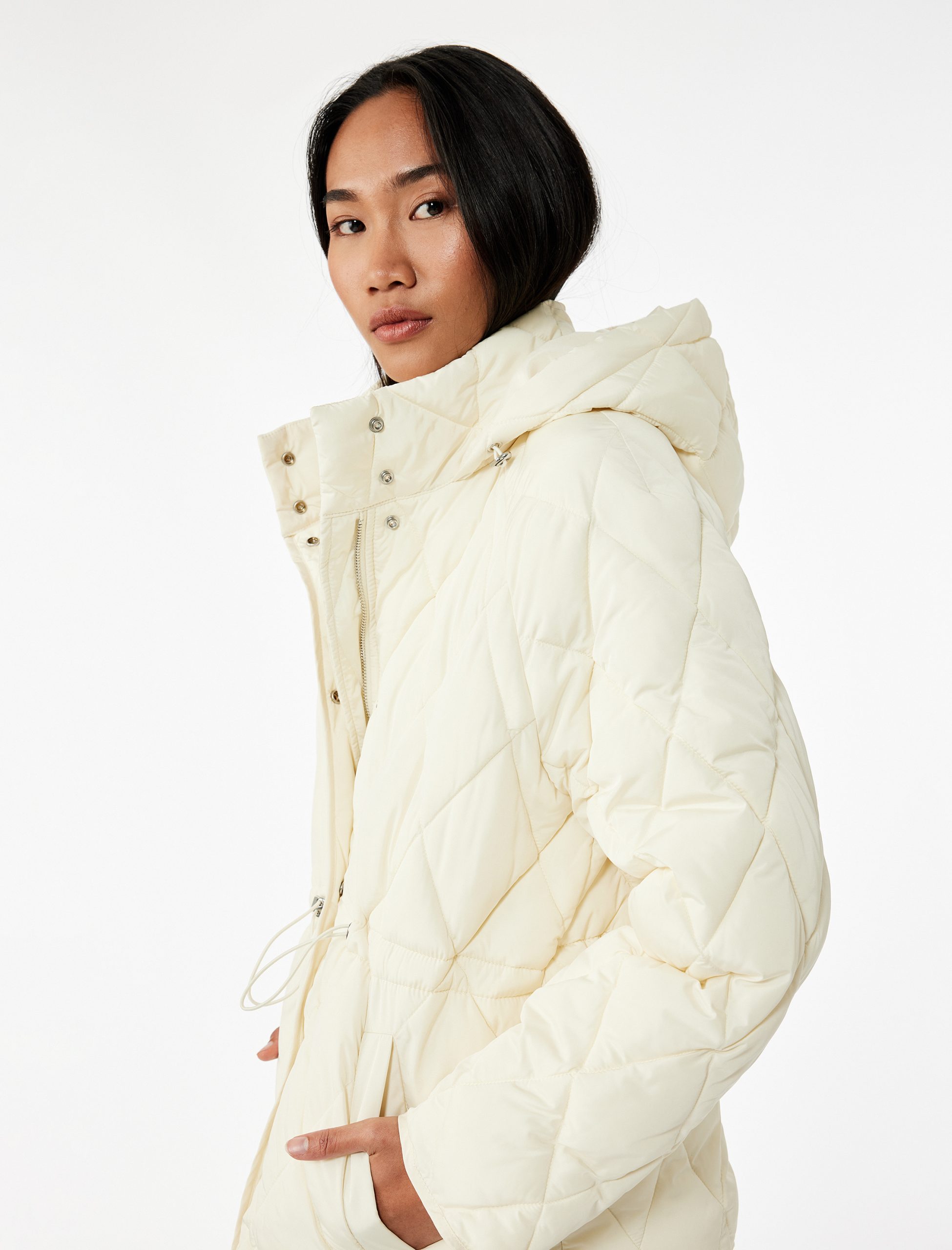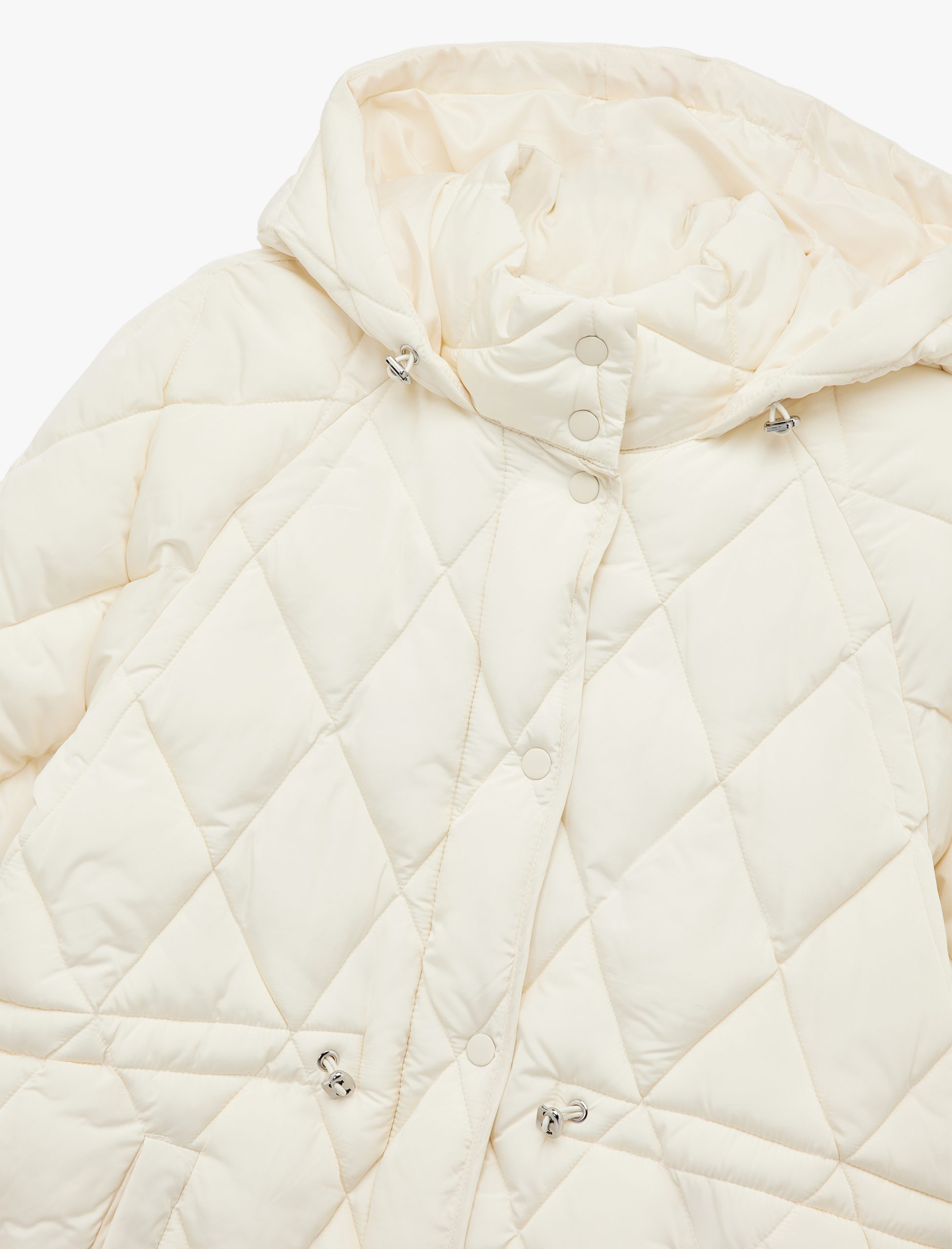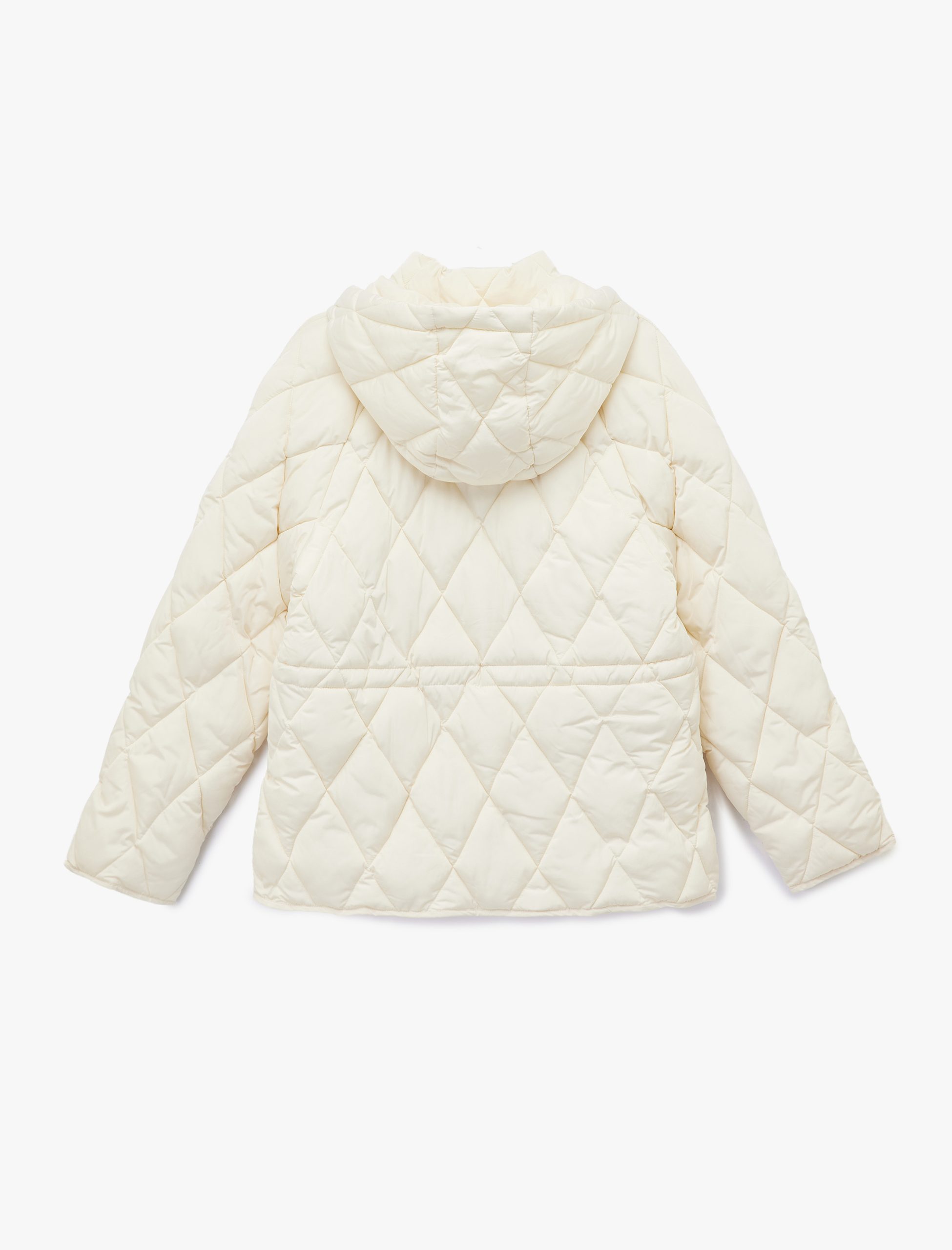 Drawstring Waist Long Sleeve Pockets Water Repellent Hooded Quilted Puffer Jacket