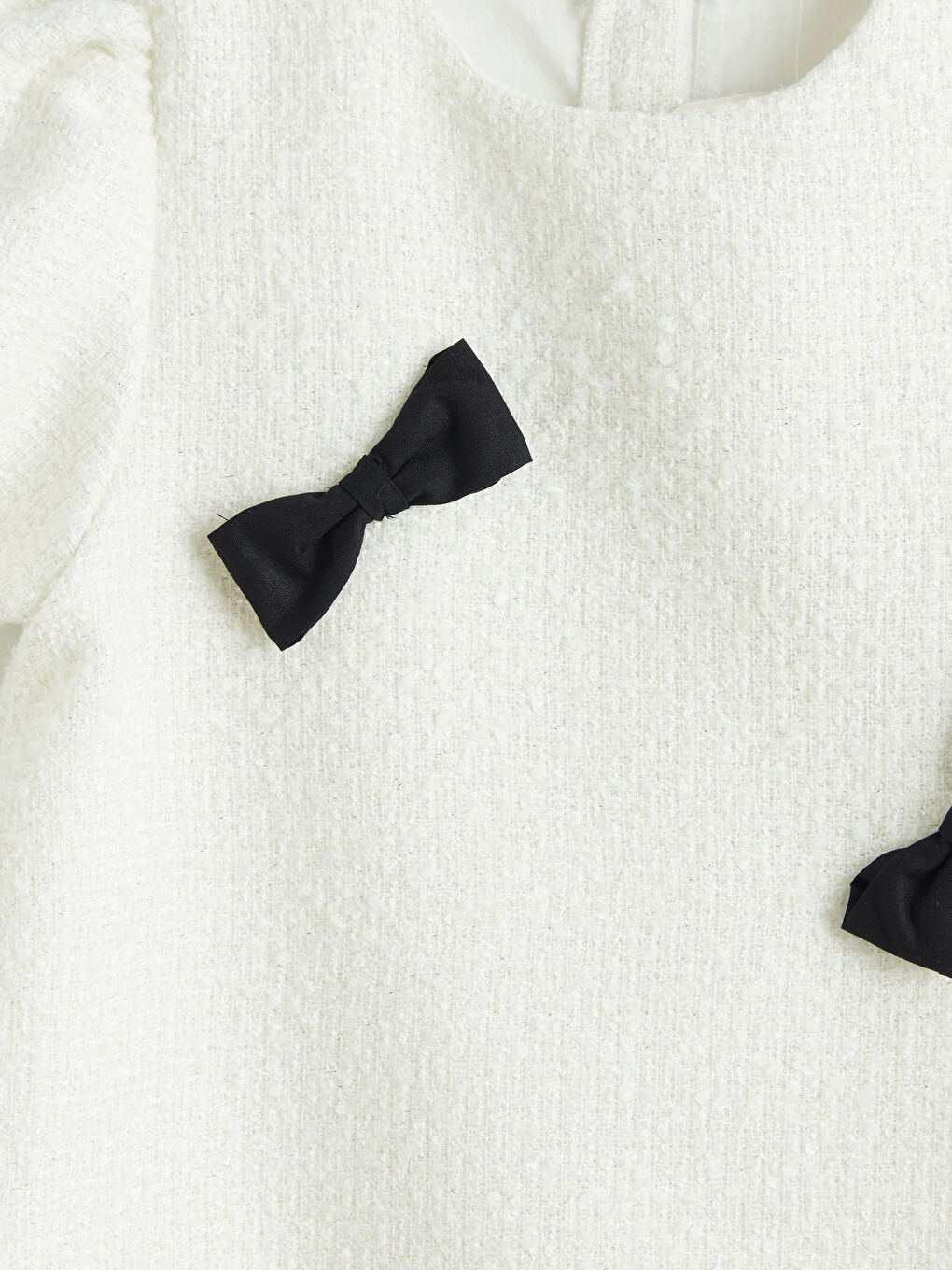 Ecru Bicycle Collar Bow Tie Girls’ Tweed Dress