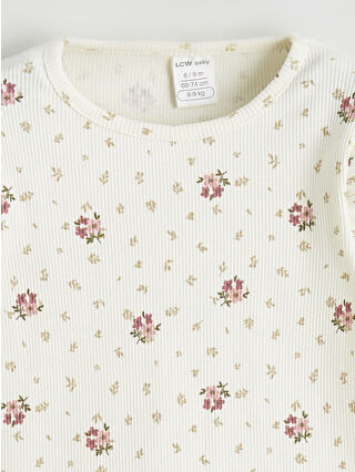 Ecru Floral Baby Girl T-Shirt and Leggings Set