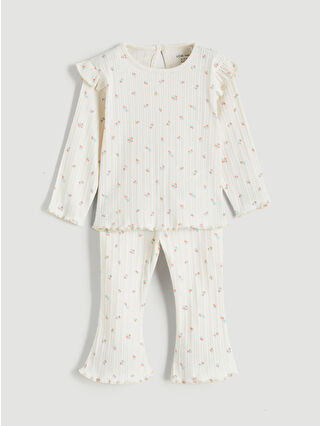 Ecru Floral Baby Girl T-Shirt and Leggings Set