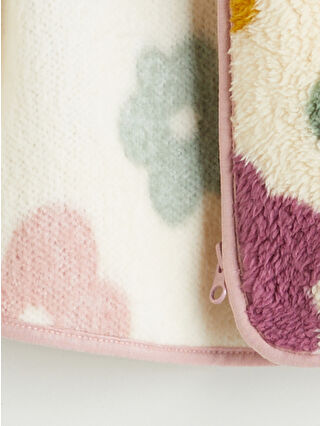 Ecru High-Neck Floral Baby Girl Plush Cardigan