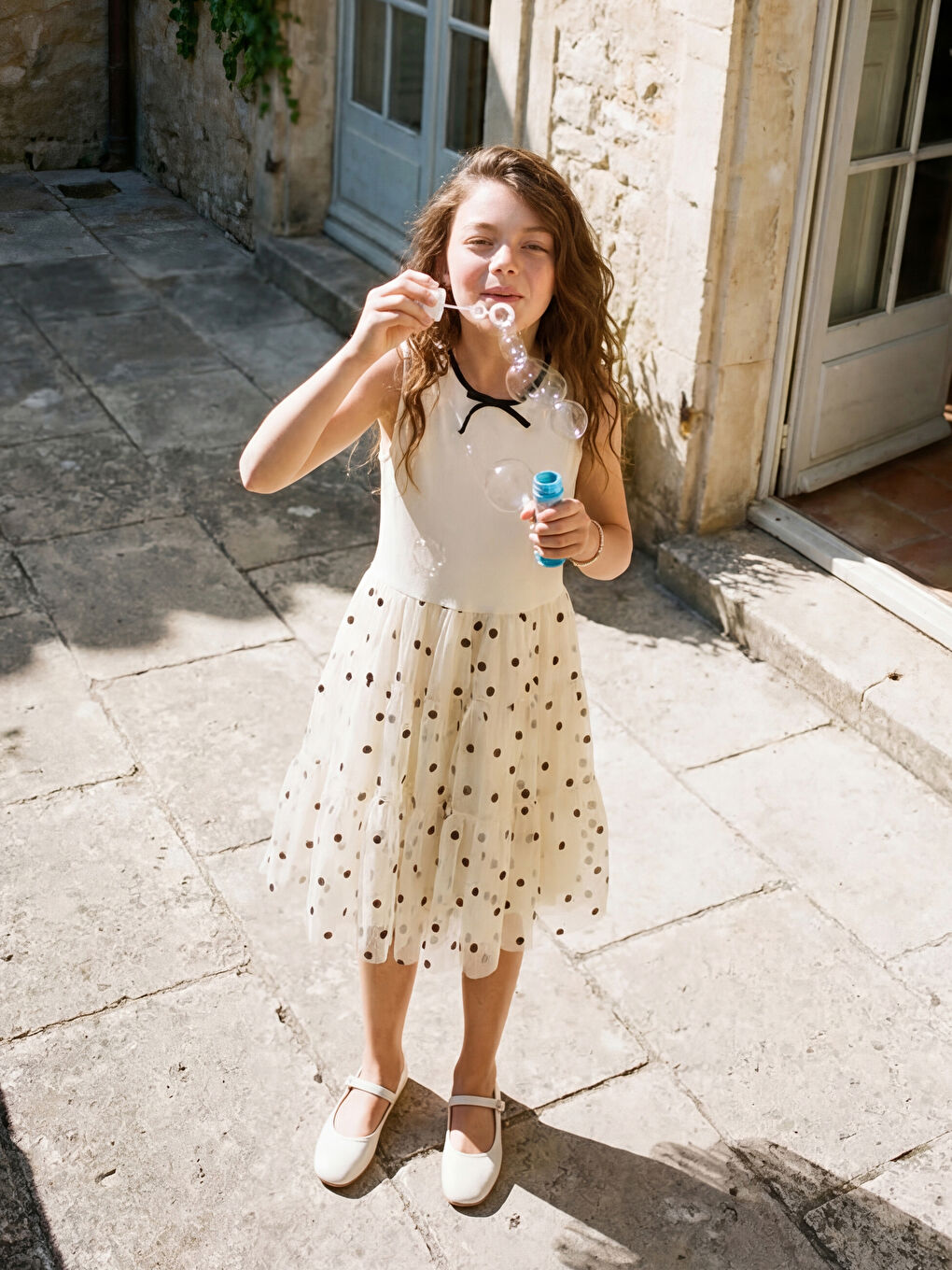 Ecru Polka Dot Girls’ Tulle Dress
