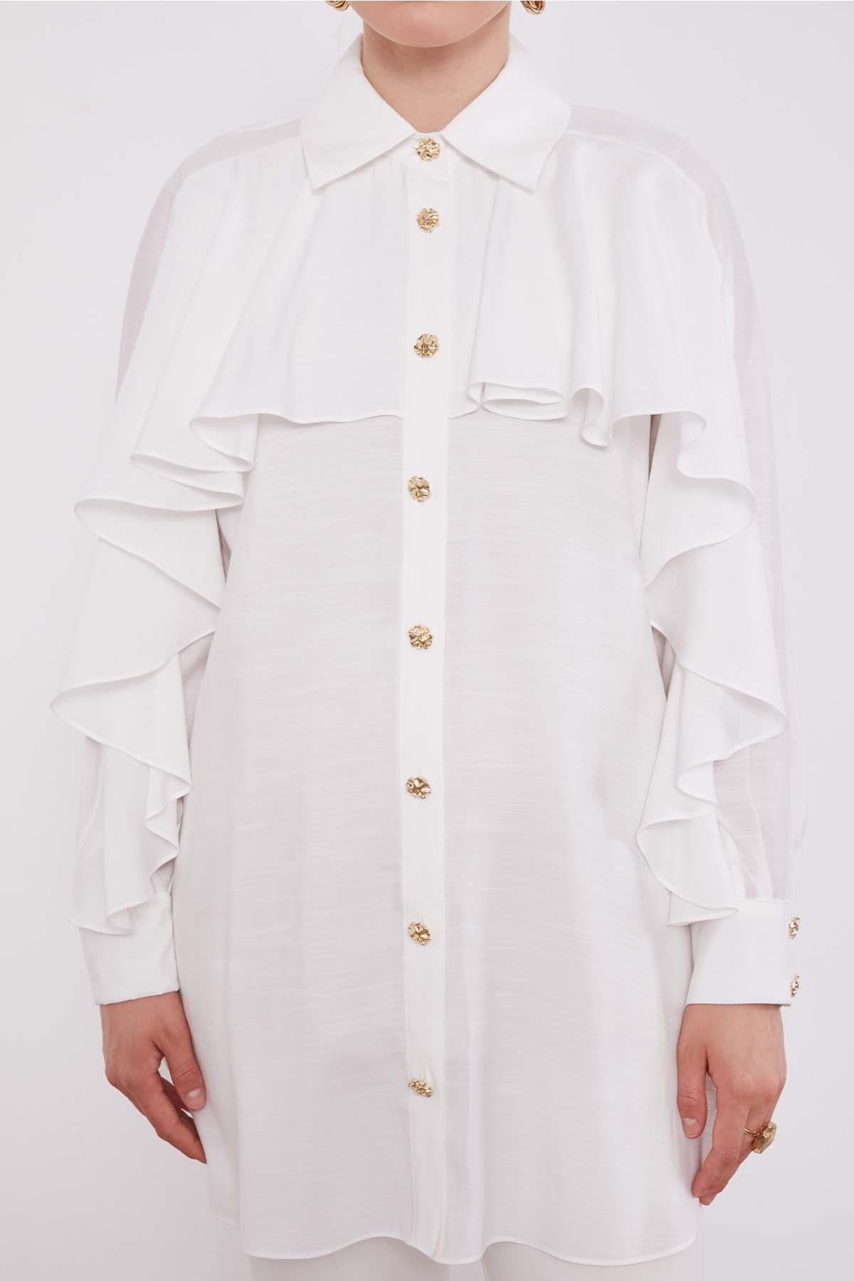 Ecru Ruffle Detail Button-Down Shirt
